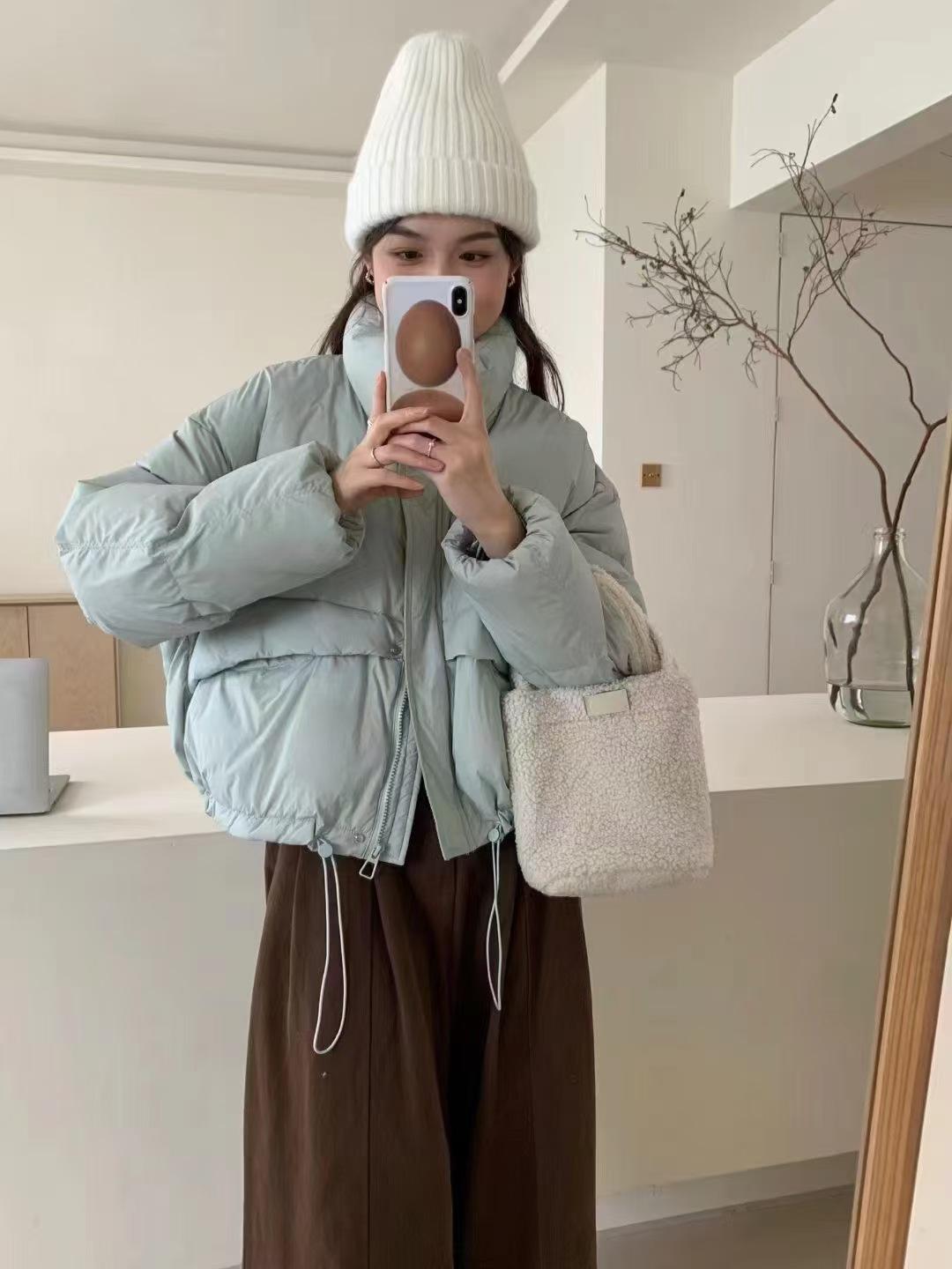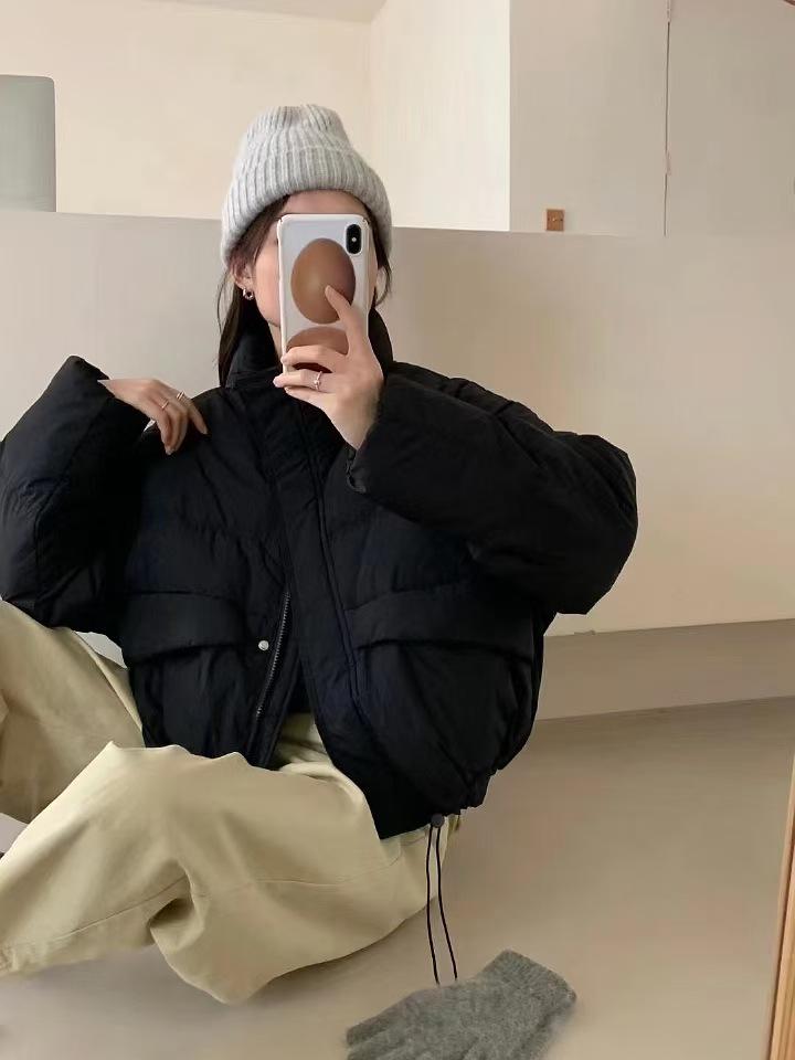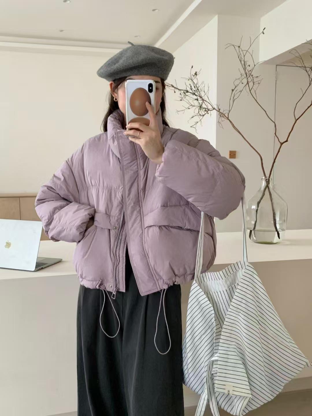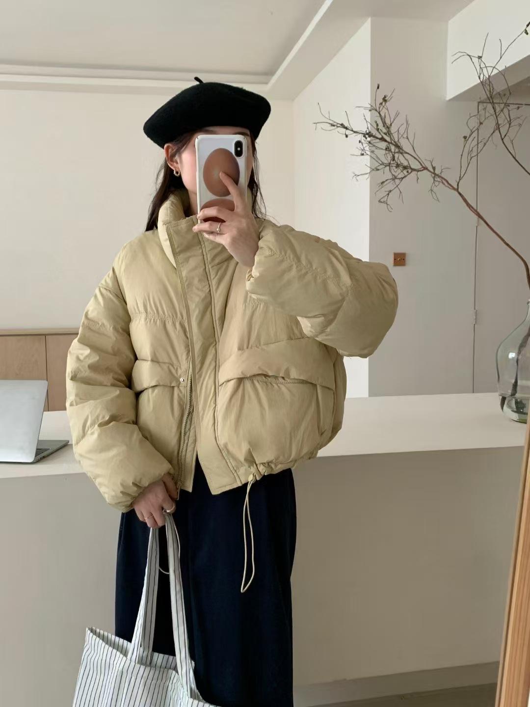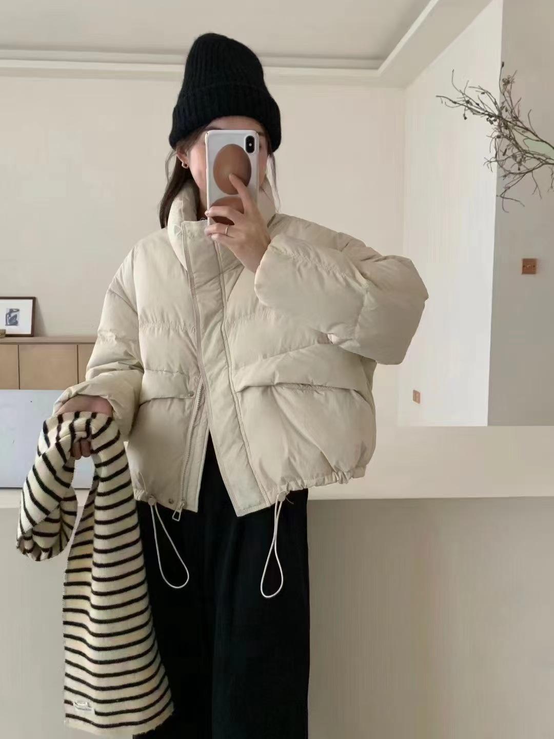 Estilo K de Cuello Alto Simple y Moderno Abrigo Corto Acolchado para Mujer Invierno 2025 Nuevo Diseño Nicho