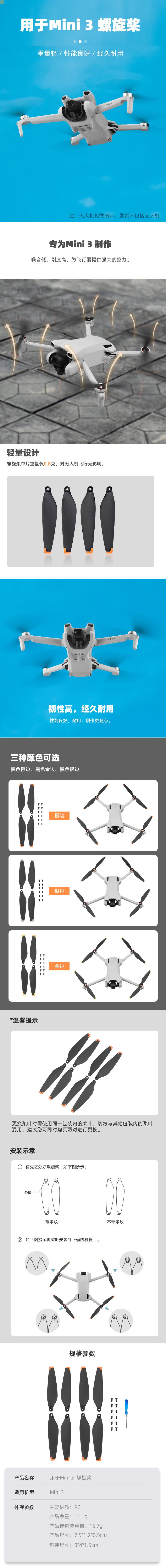 2. Las hélices diseñadas para Mini 3 son ligeras, de buen rendimiento y duraderas;