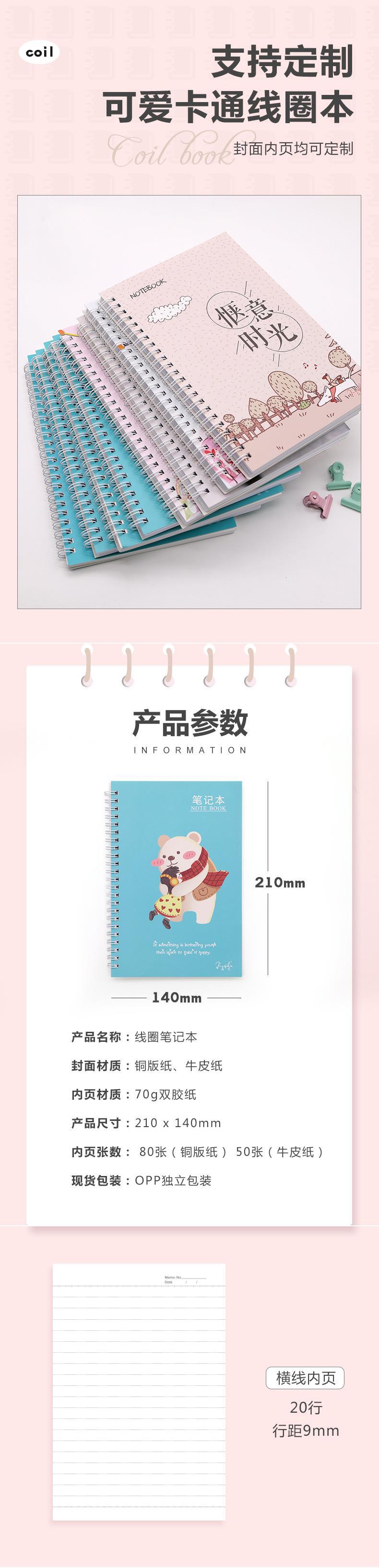 A5 cuaderno espiral de papel kraft vintage cuaderno de estudiante rayado de tapa blanda cuaderno de dibujos animados lindo planificador
