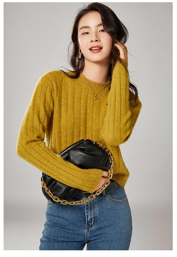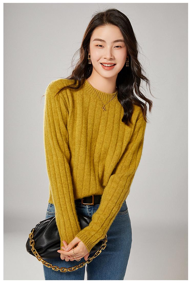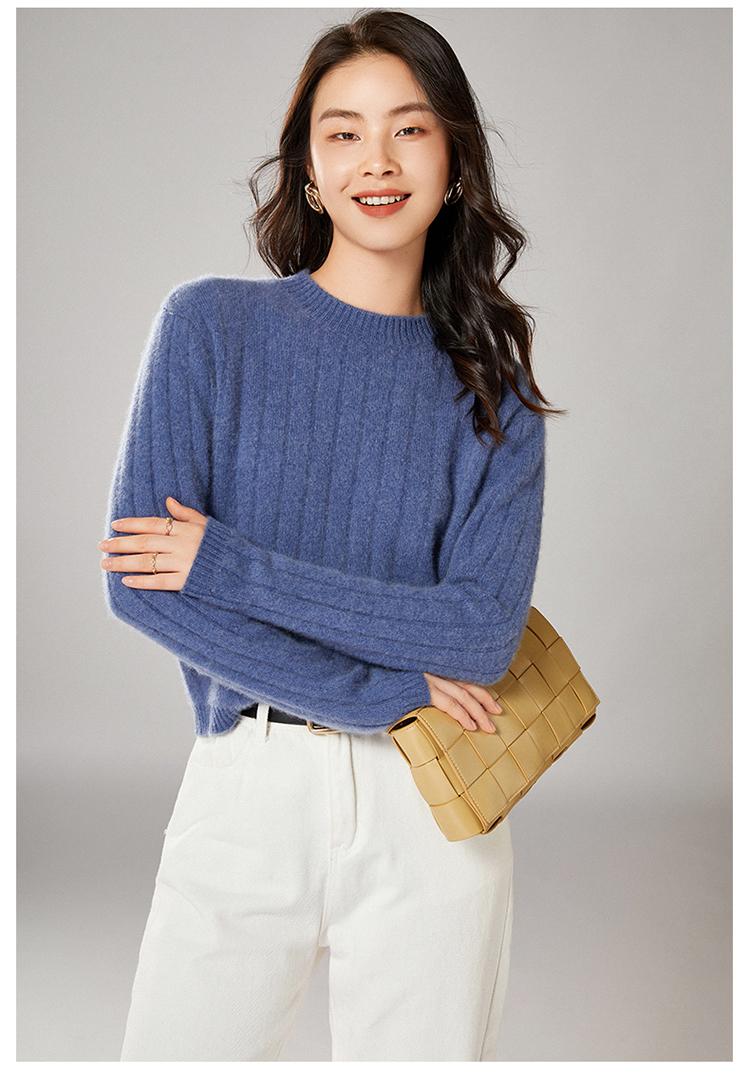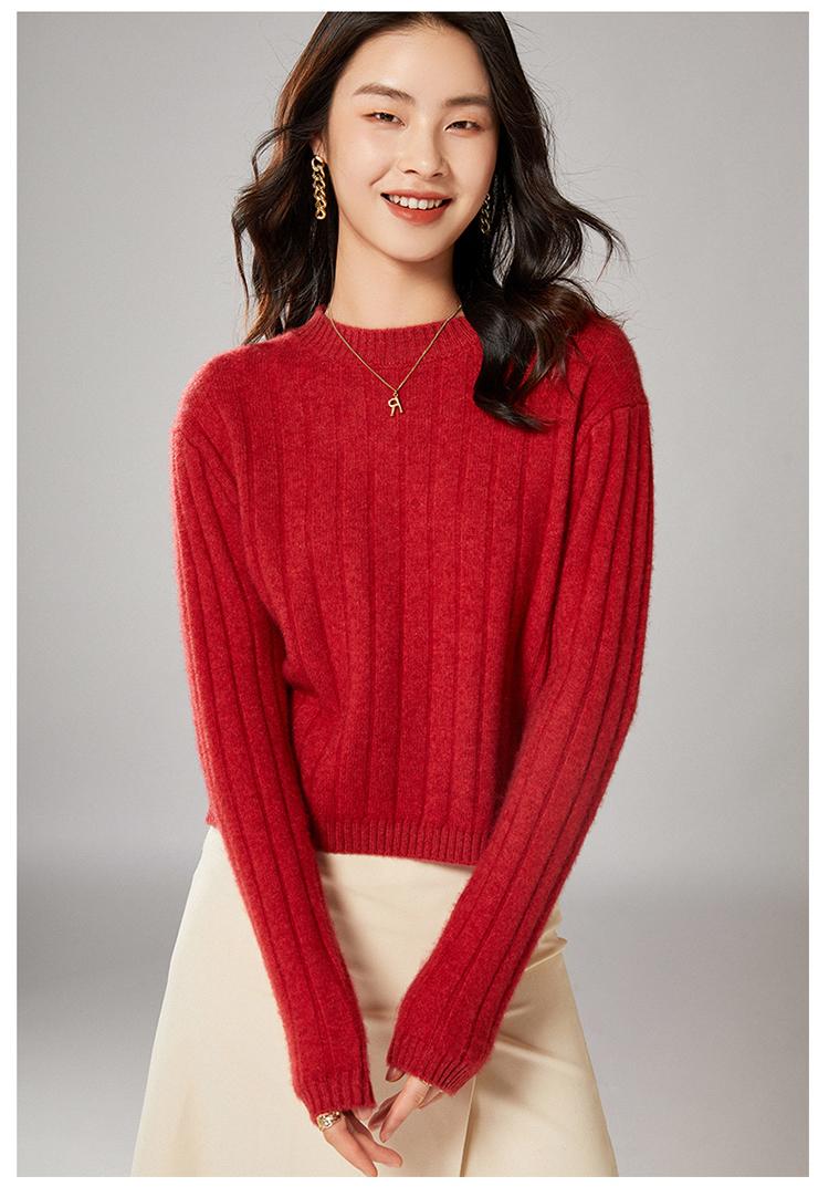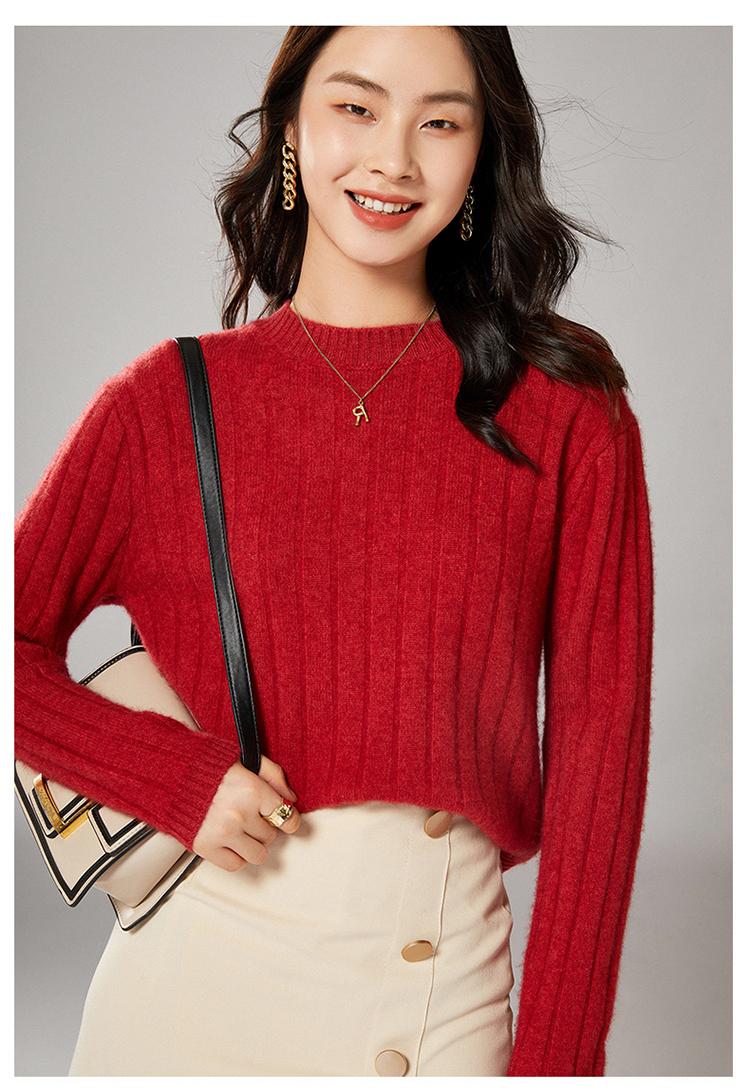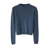Otoño e invierno Nuevo suéter de lana 100% pura para mujer cuello redondo cordón corto holgado color sólido casual para llevar debajo suéter de cachemira