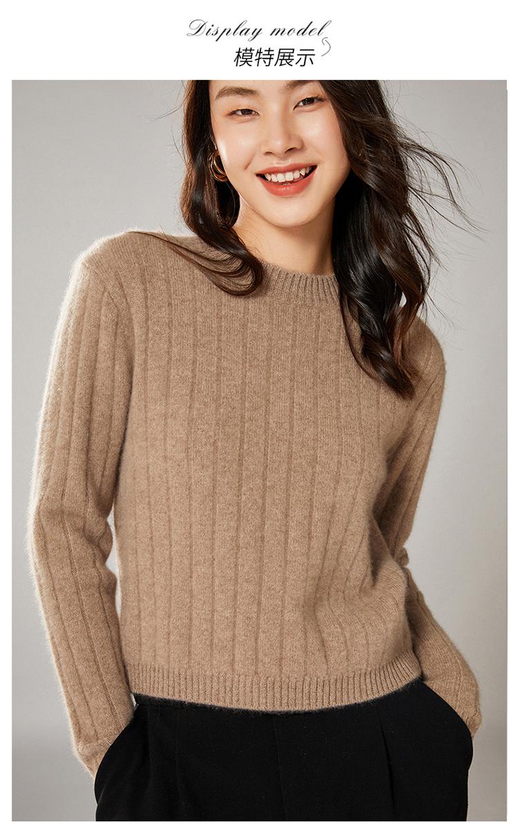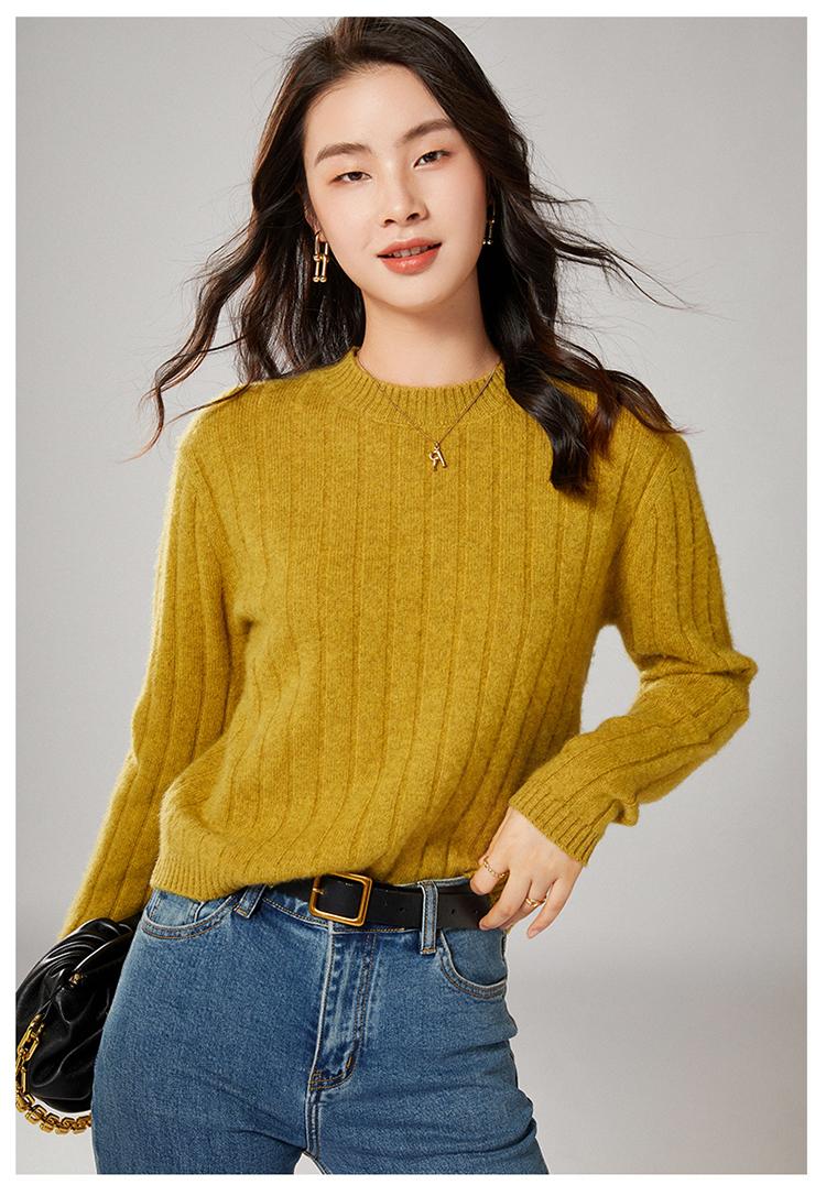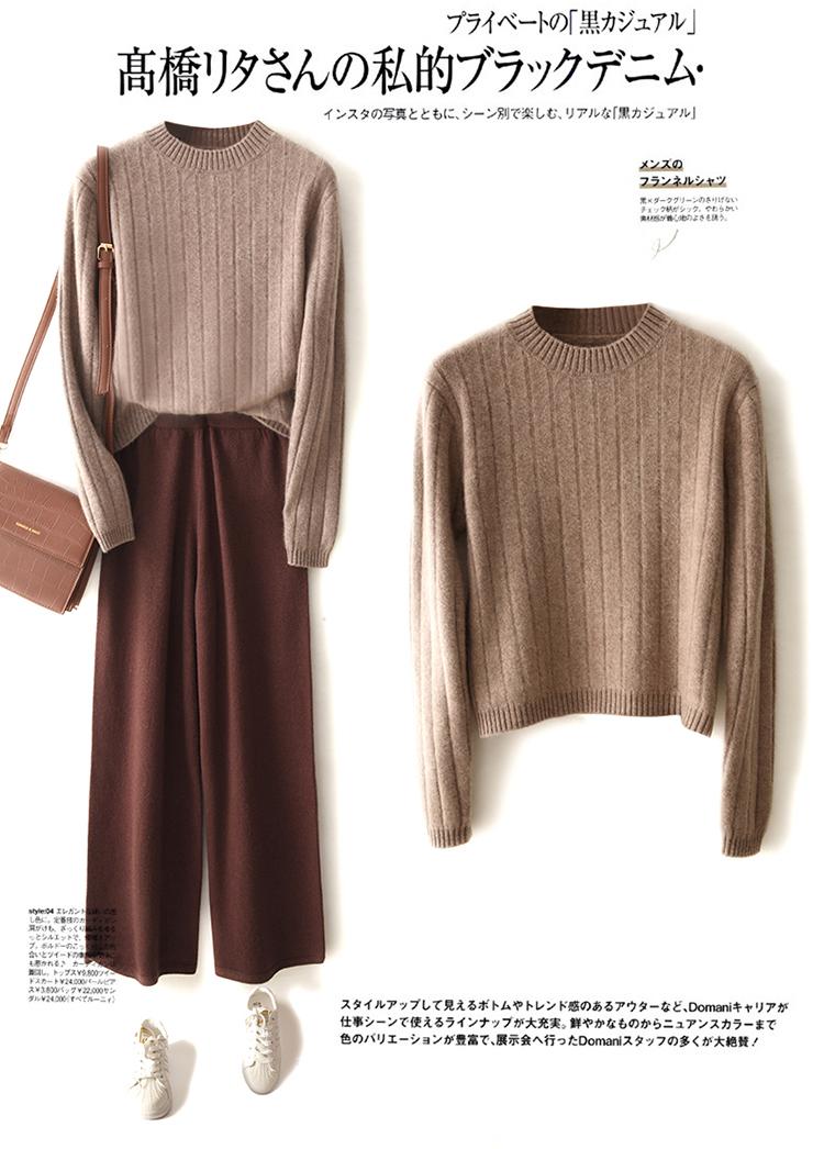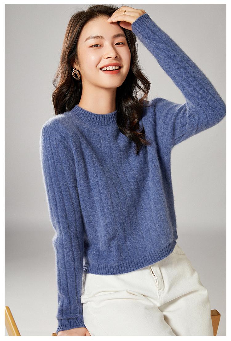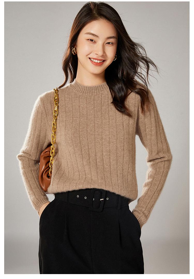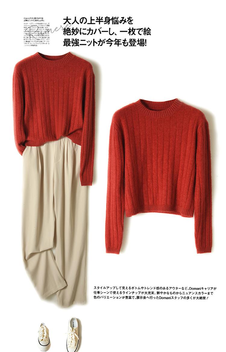 Otoño e invierno Nuevo suéter de lana 100% pura para mujer cuello redondo cordón corto holgado color sólido casual para llevar debajo suéter de cachemira