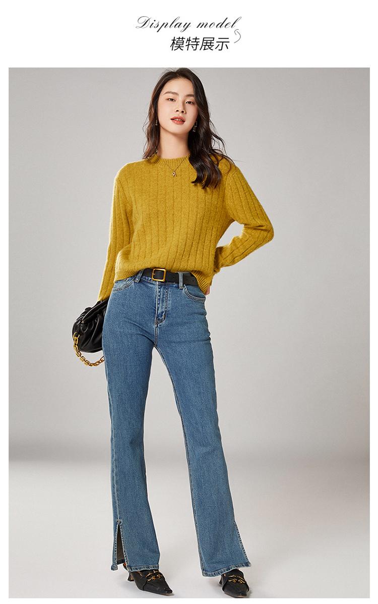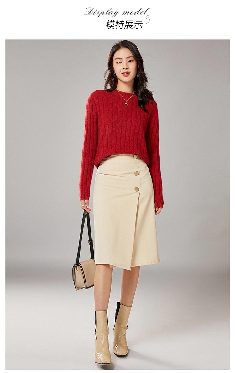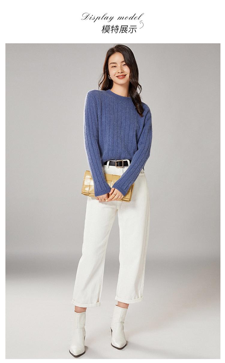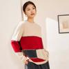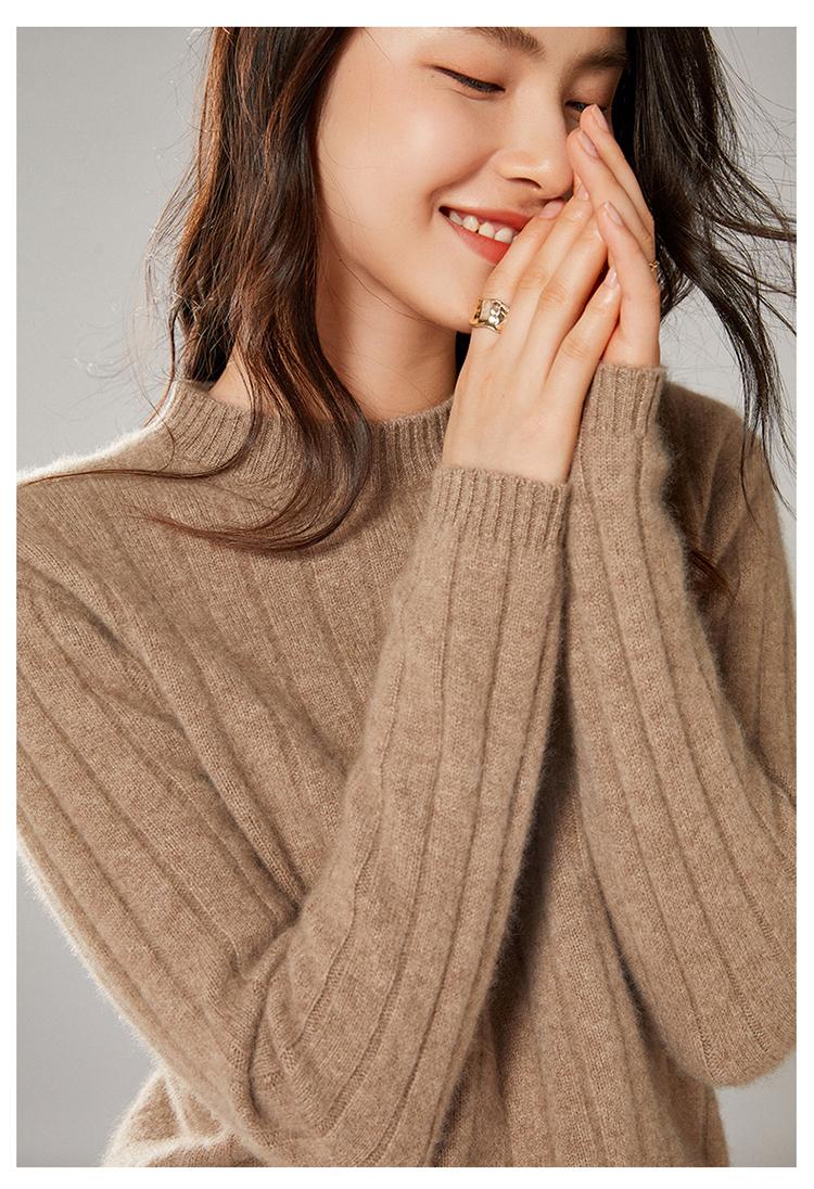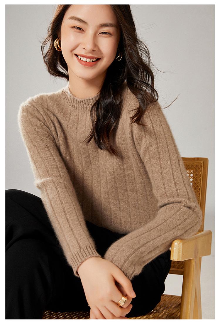 Otoño e invierno Nuevo suéter de lana 100% pura para mujer cuello redondo cordón corto holgado color sólido casual para llevar debajo suéter de cachemira