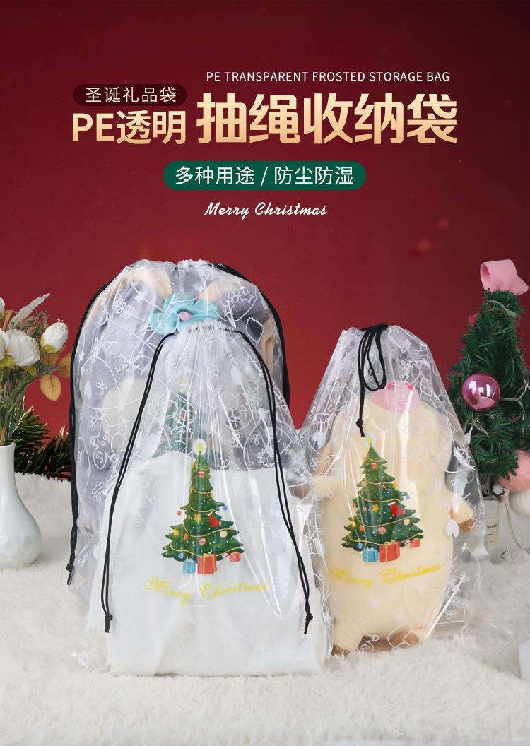 Bolsa de Regalo Grande de Navidad Bolsa de Almacenamiento de Regalos de Peluche Bolsa de Embalaje de Plástico en Stock Transparente Engrosada PE Bolsa con Cordón