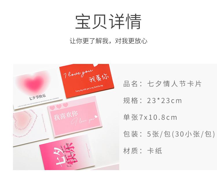 Qixi Valentine's Day Cards; 5 cards/pack (30 small cards/pack)