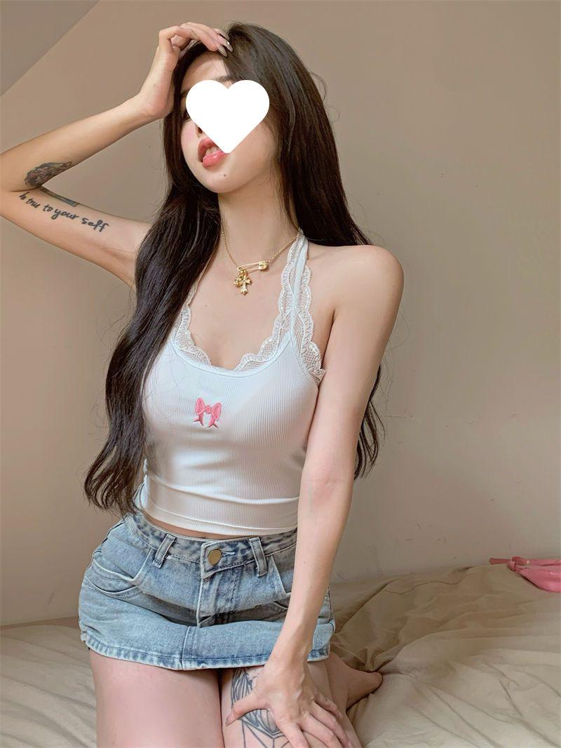 Camisola de encaje con cuello halter estilo coreano, chaleco pequeño para mujer, nuevo estilo de verano, dulce y sexy, estilo corto, prenda interior y exterior