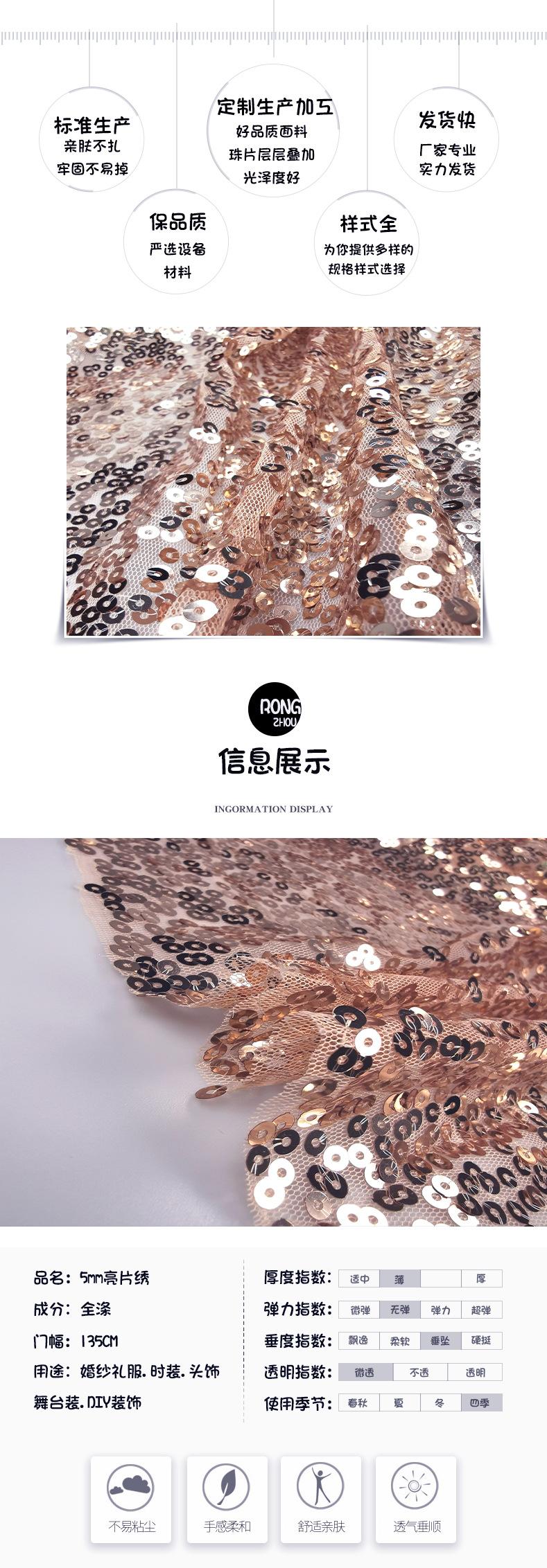 Tela bordada con lentejuelas de 5 mm poliéster tela bordada encriptada vestido de moda tela para mantel de mujer en stock