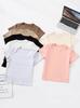 Playera de Manga Corta con Hombro Derecho Descubierto de Color Sólido para Mujer Verano Nuevo Sexy Ajustada Versátil Camiseta Básica Cuello Redondo Top Corto