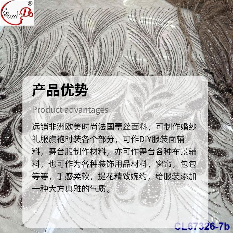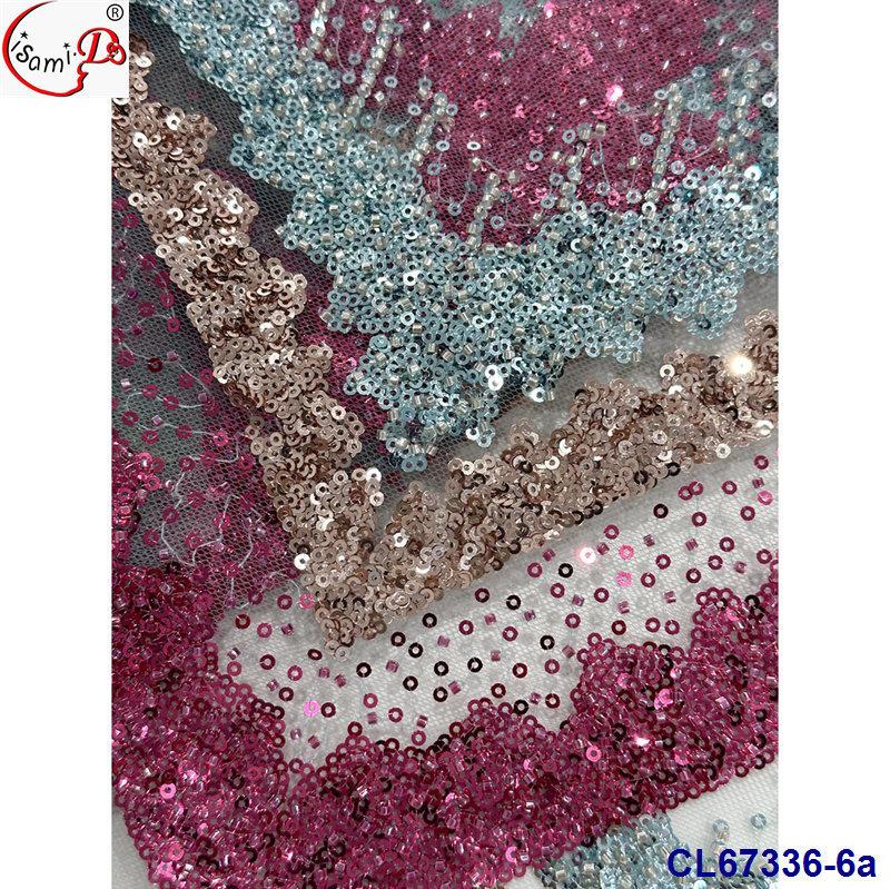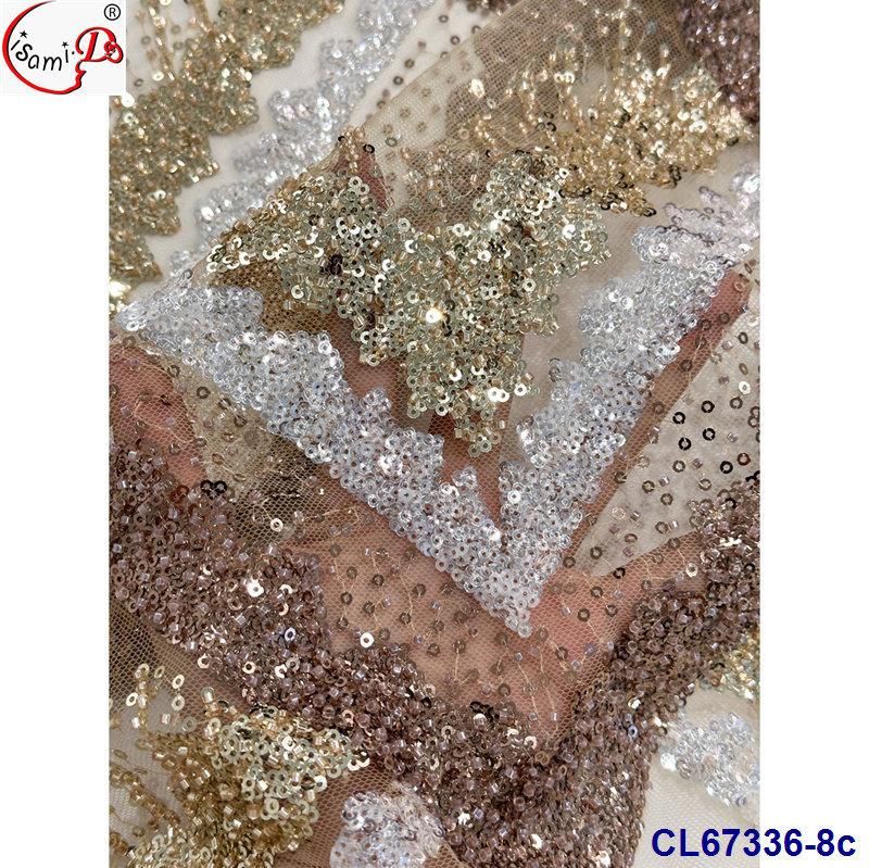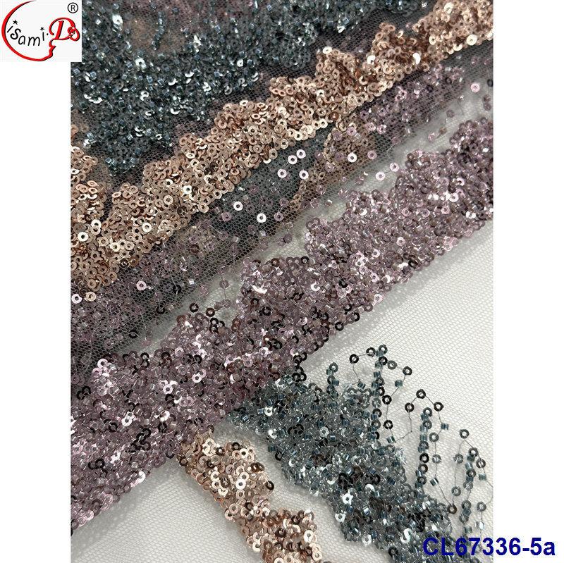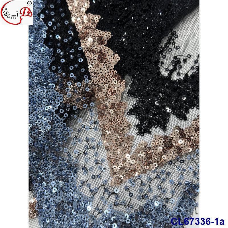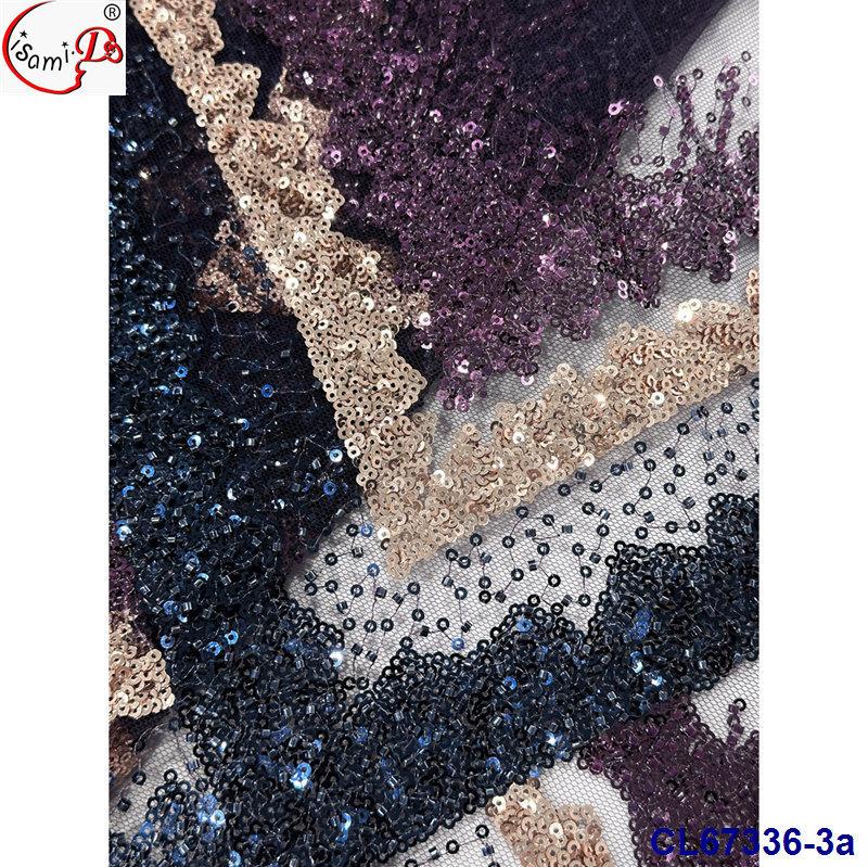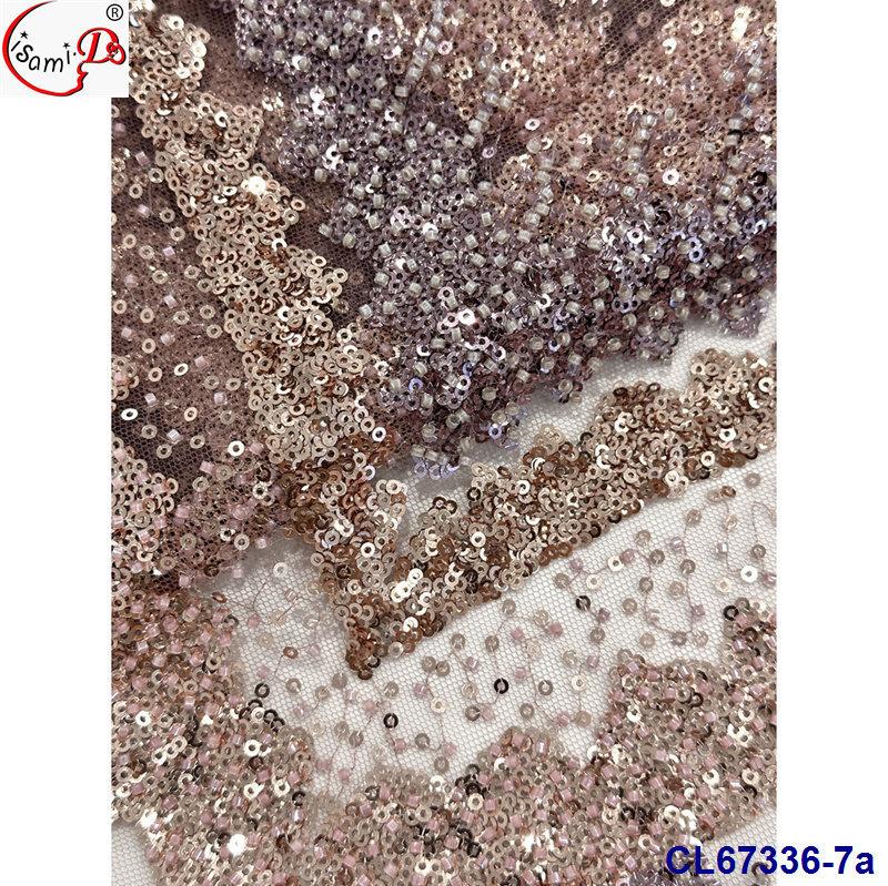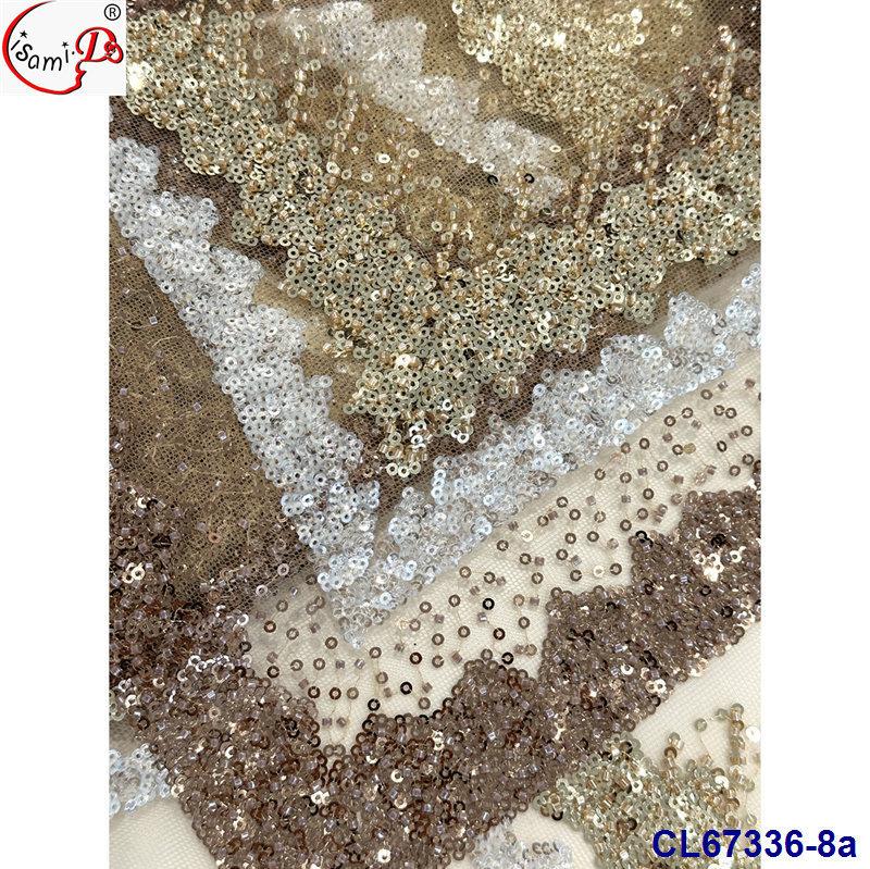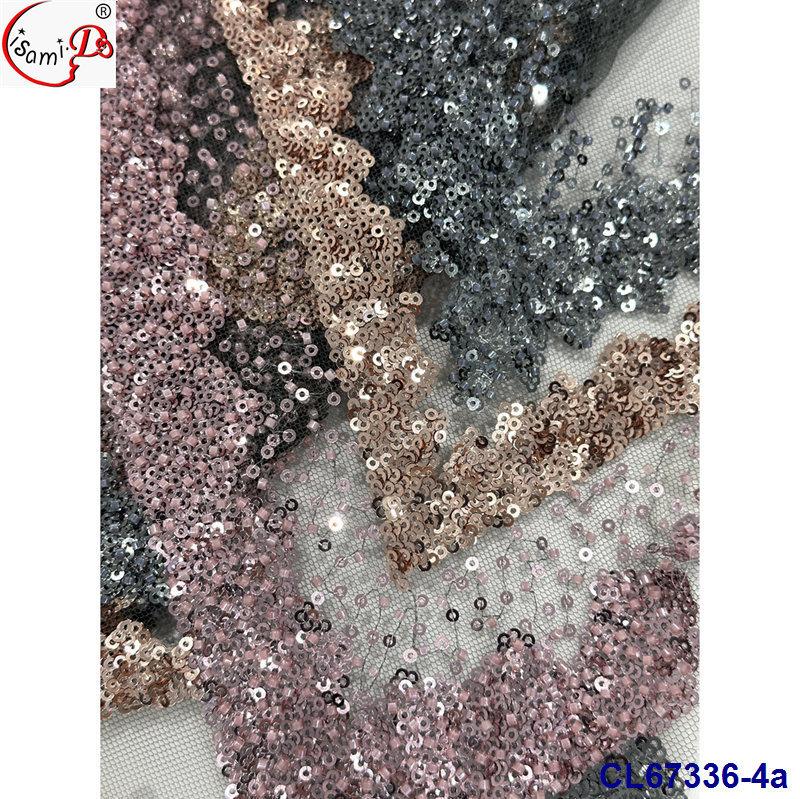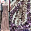 Tela de Encaje con Lentejuelas Bordadas con Patrón de Diamante y Flor de Malla con Cuentas Pesadas para Novia