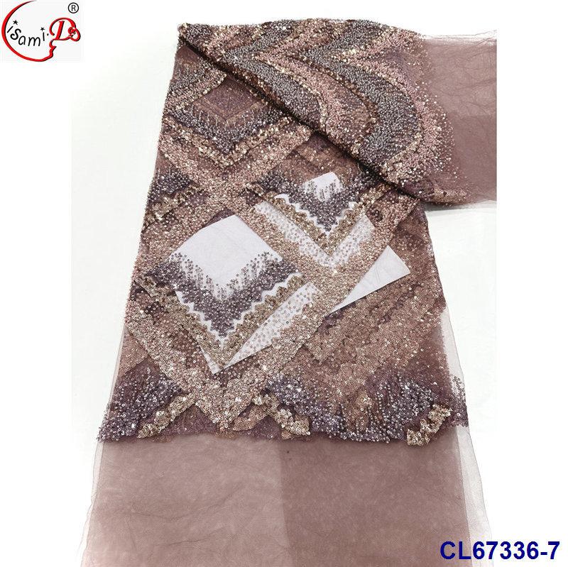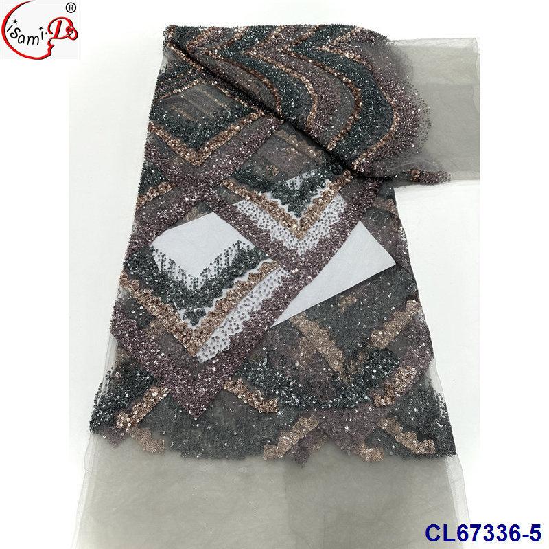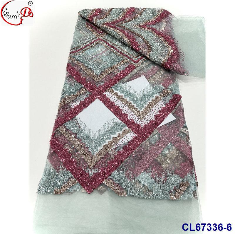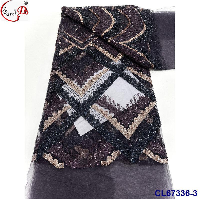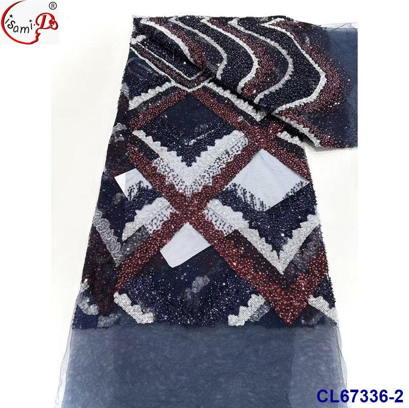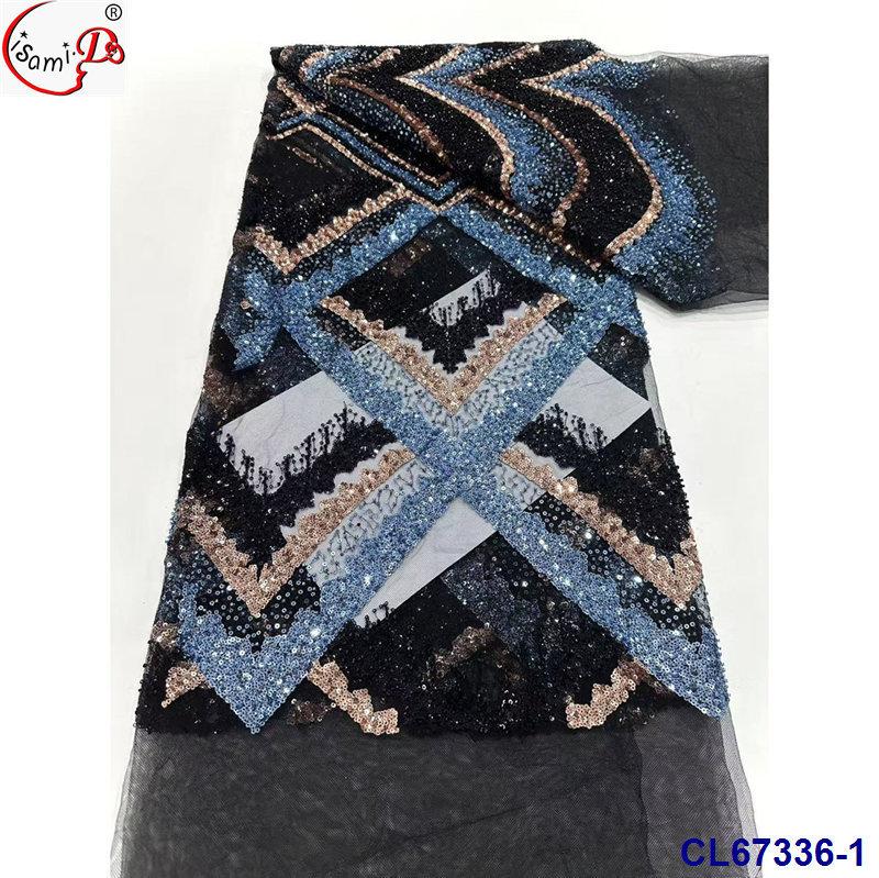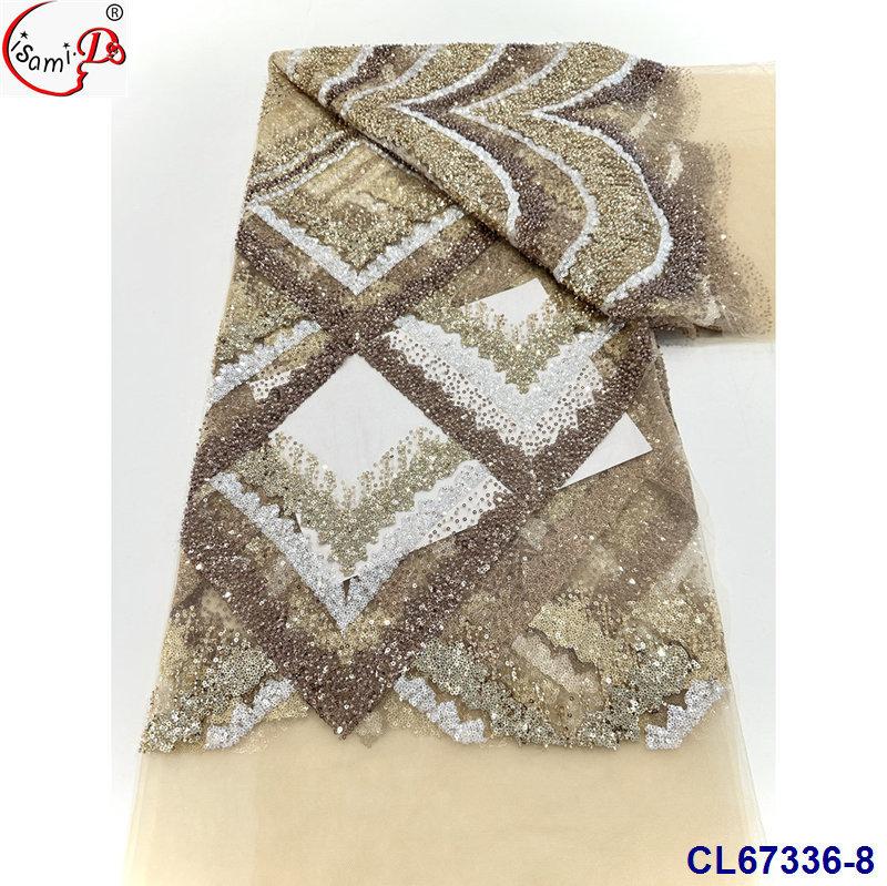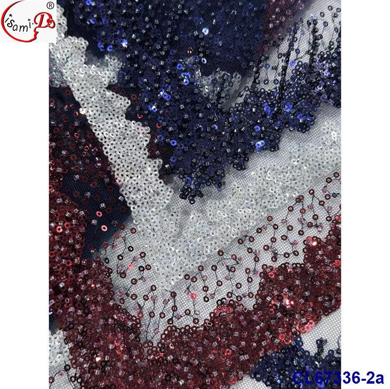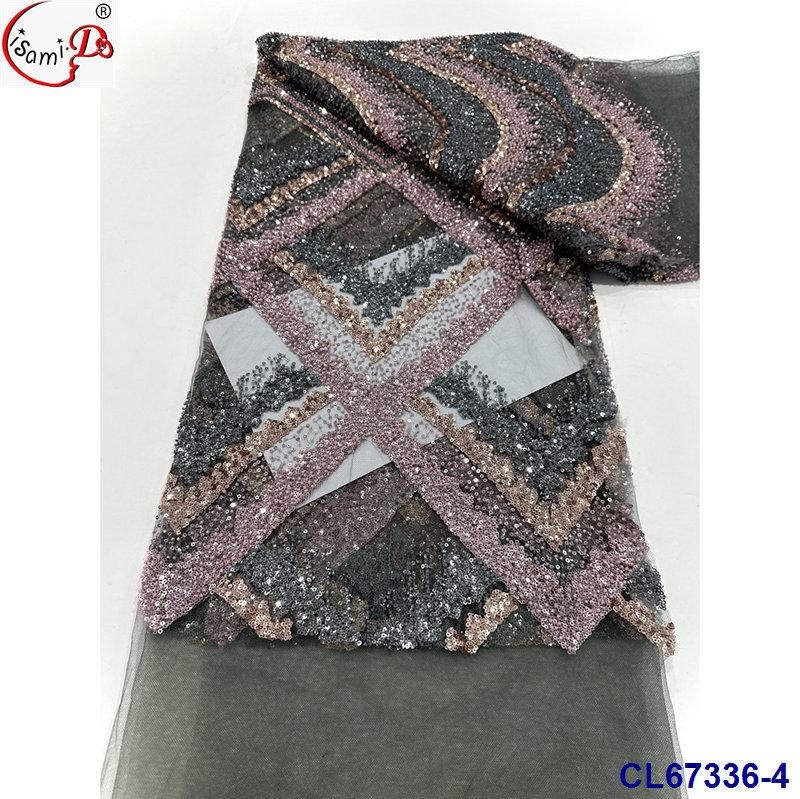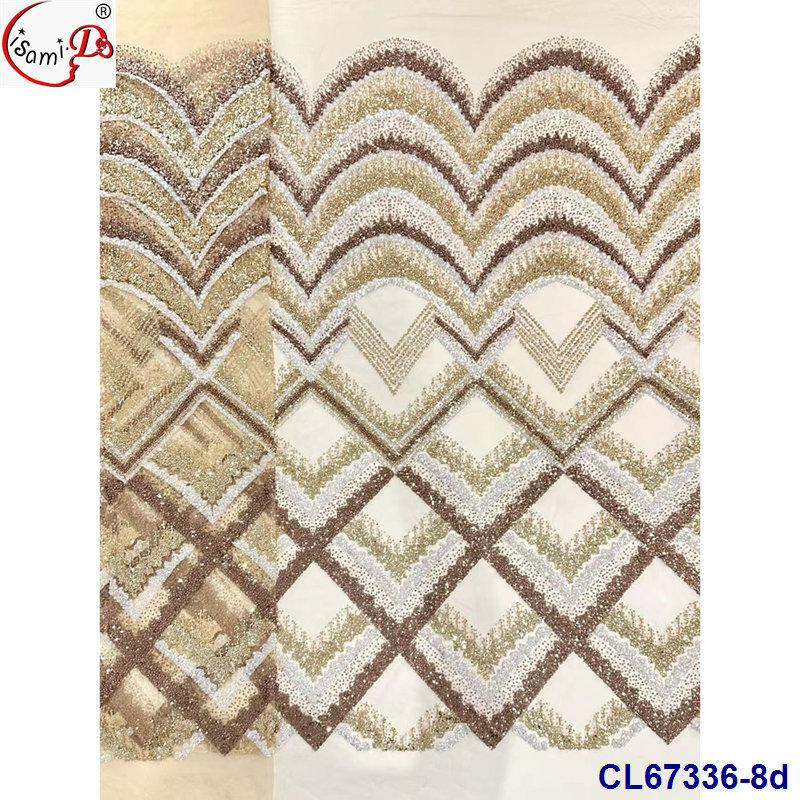 Tela de Encaje con Lentejuelas Bordadas con Patrón de Diamante y Flor de Malla con Cuentas Pesadas para Novia