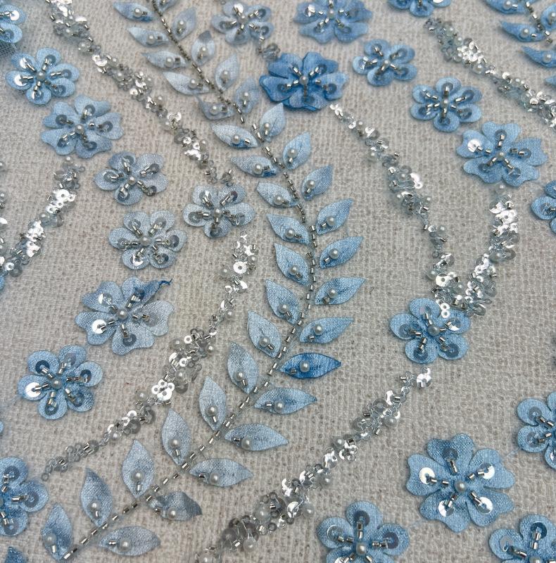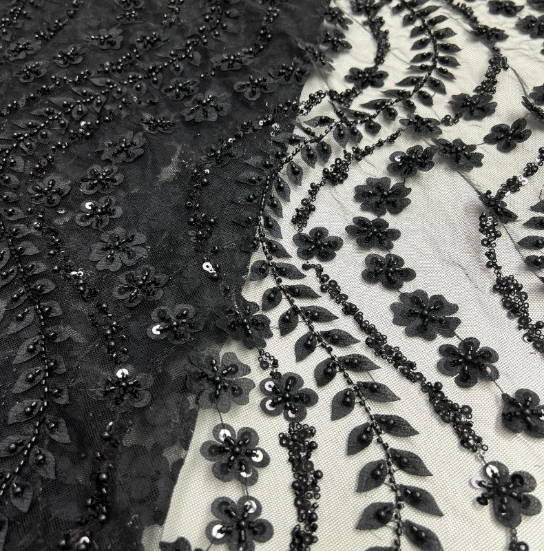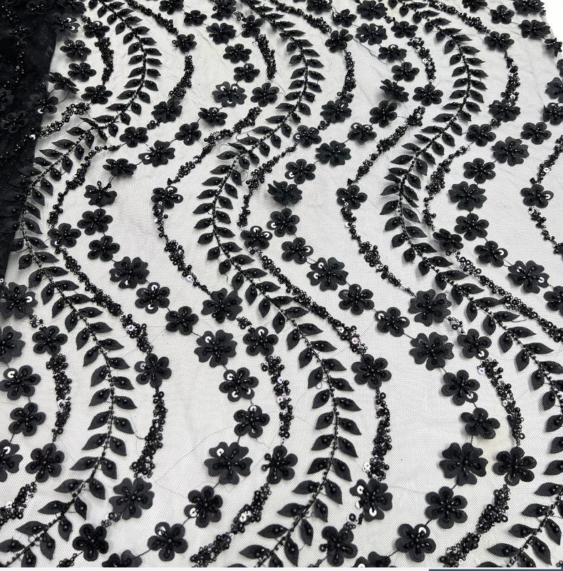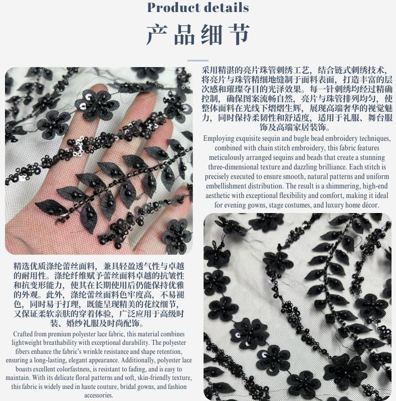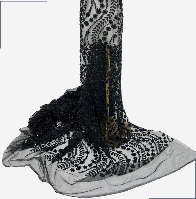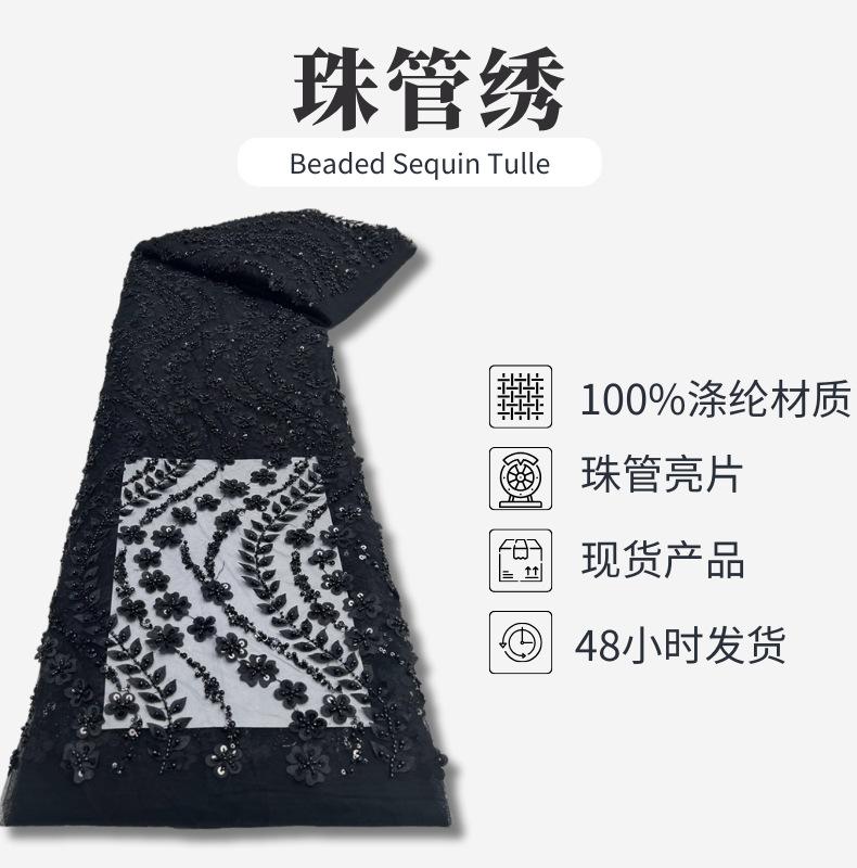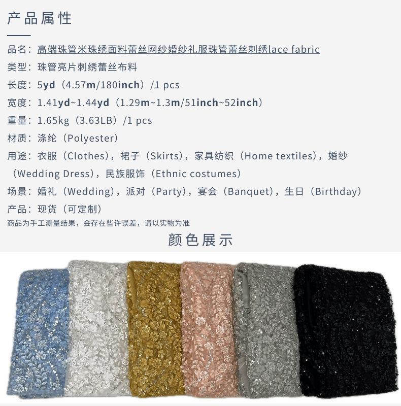 Tela para vestido de novia con bordado de tubo de cuentas y lentejuelas pesadas, tela de encaje para falda