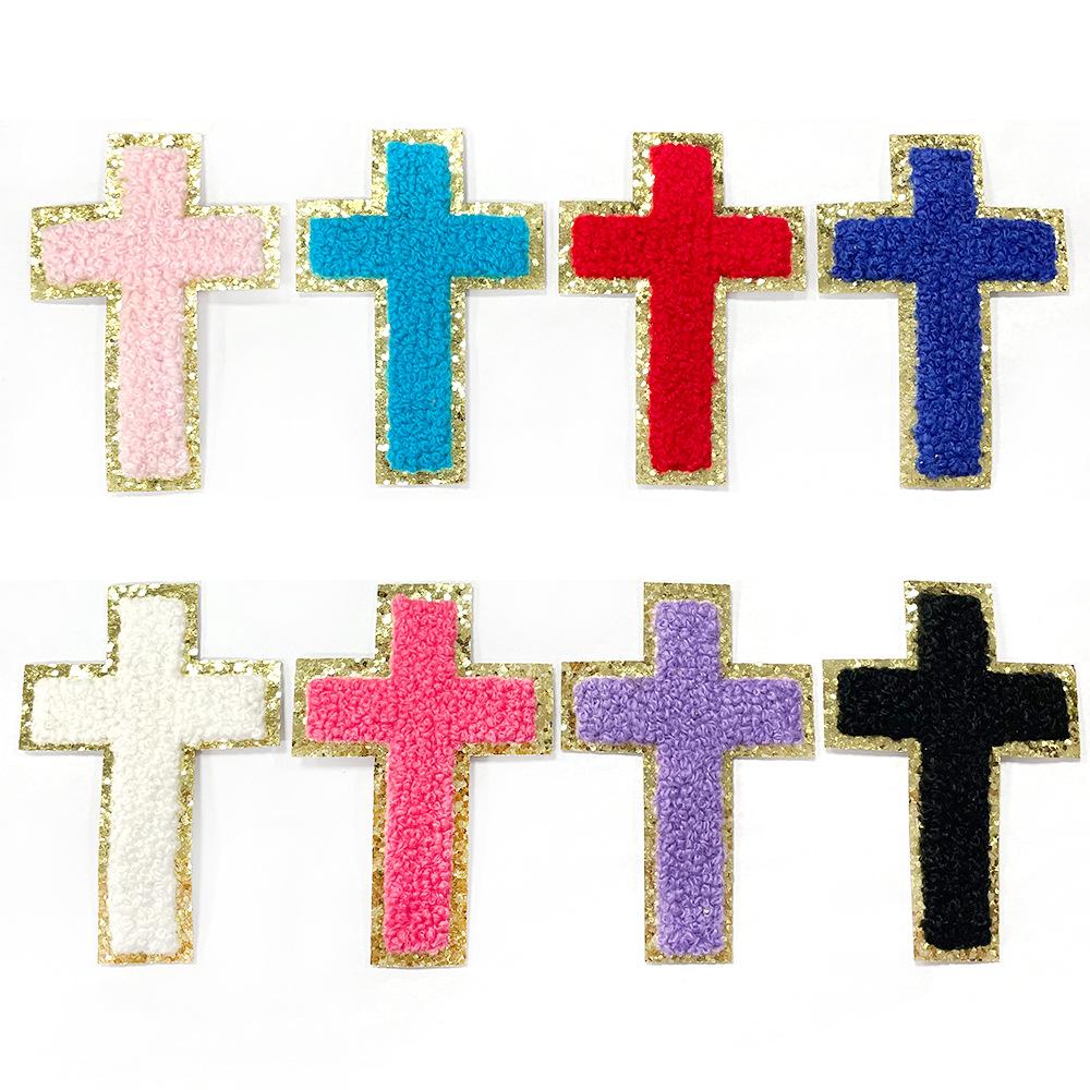 Bordado Chenille Quente Colorido Laço Cruz Versátil Patch de Tecido Termocolante Decoração Fornecimento Exclusivo Transfronteiriço
