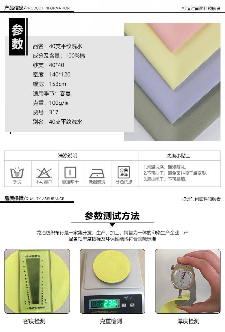 Tela de Camisa Popelina de Alta Densidad de 40 Hilos 133*100 Popelina Lisa Tela de Vestido de Algodón Lavado