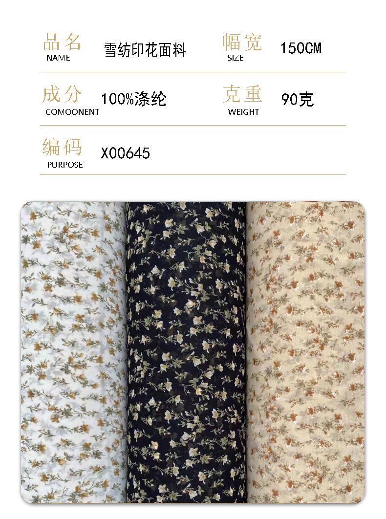 Gasa Cuentas Tela Estampada Poliéster Tejido Tejido Floral Pequeño Estilo Japonés y Coreano Camisa de Vestir Camisa Caliente Estilo Flor