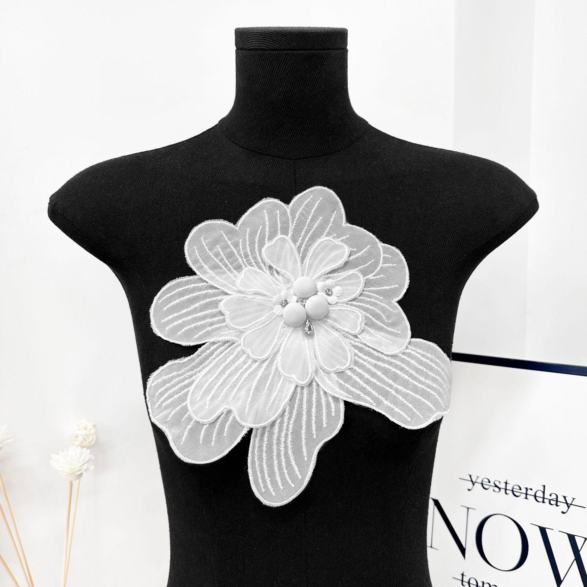 Corsage de Cuentas Multicapa, Botón Floral Bordado a Computadora, Vestido de Mujer Tridimensional, Camisa, Accesorios para Bolso, Aplique