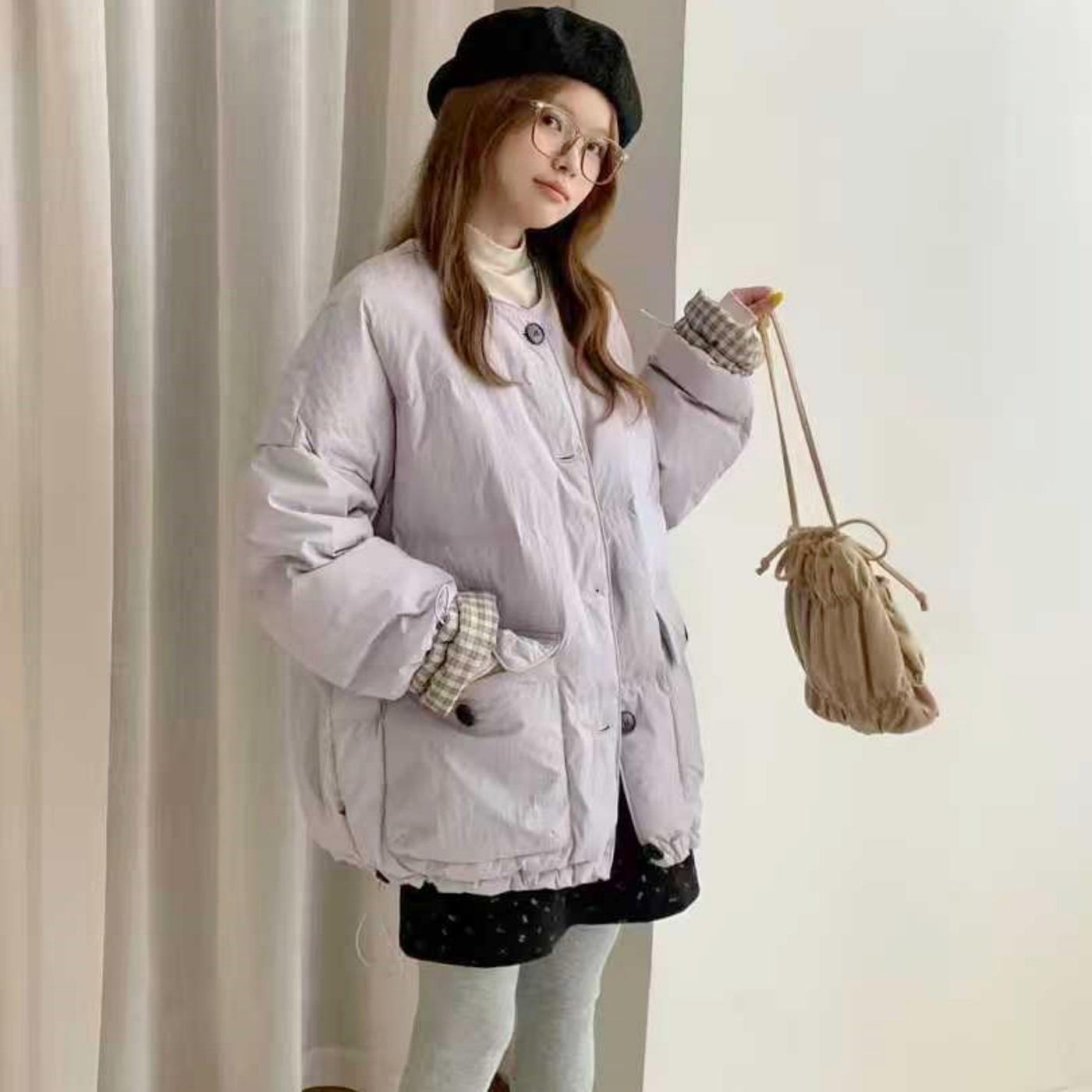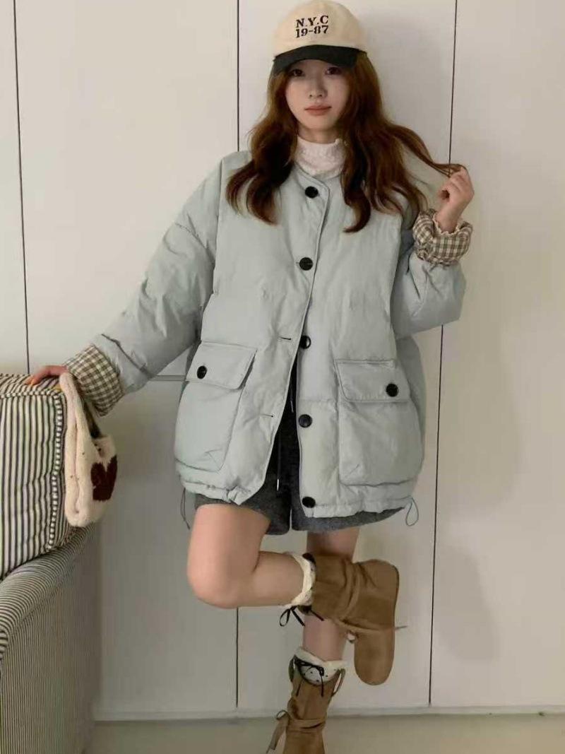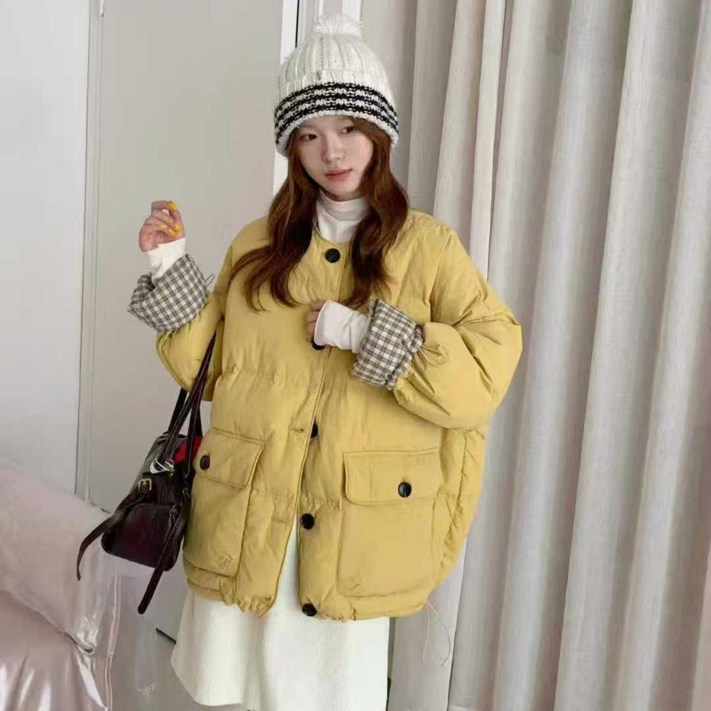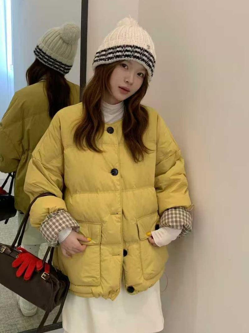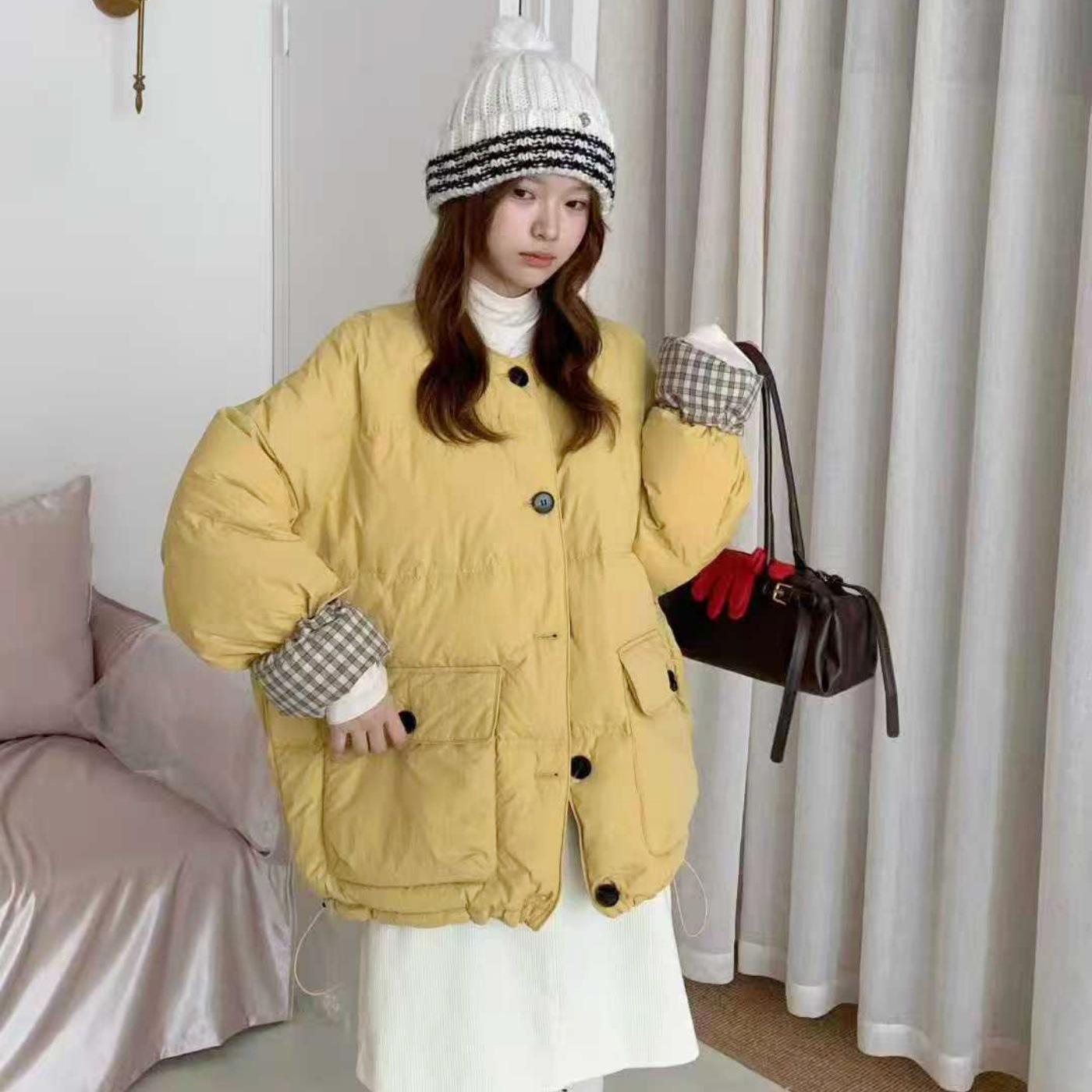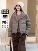 Chamarra de Plumón para Mujer Invierno 2025 Nuevo Coreana Casual Patchwork Tartán Plumón de Pato Blanco Cuello Redondo Abrigo Cálido Chica