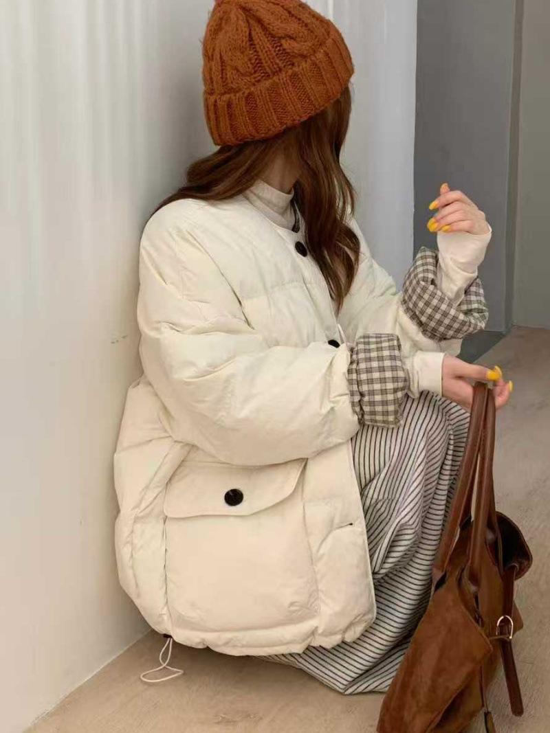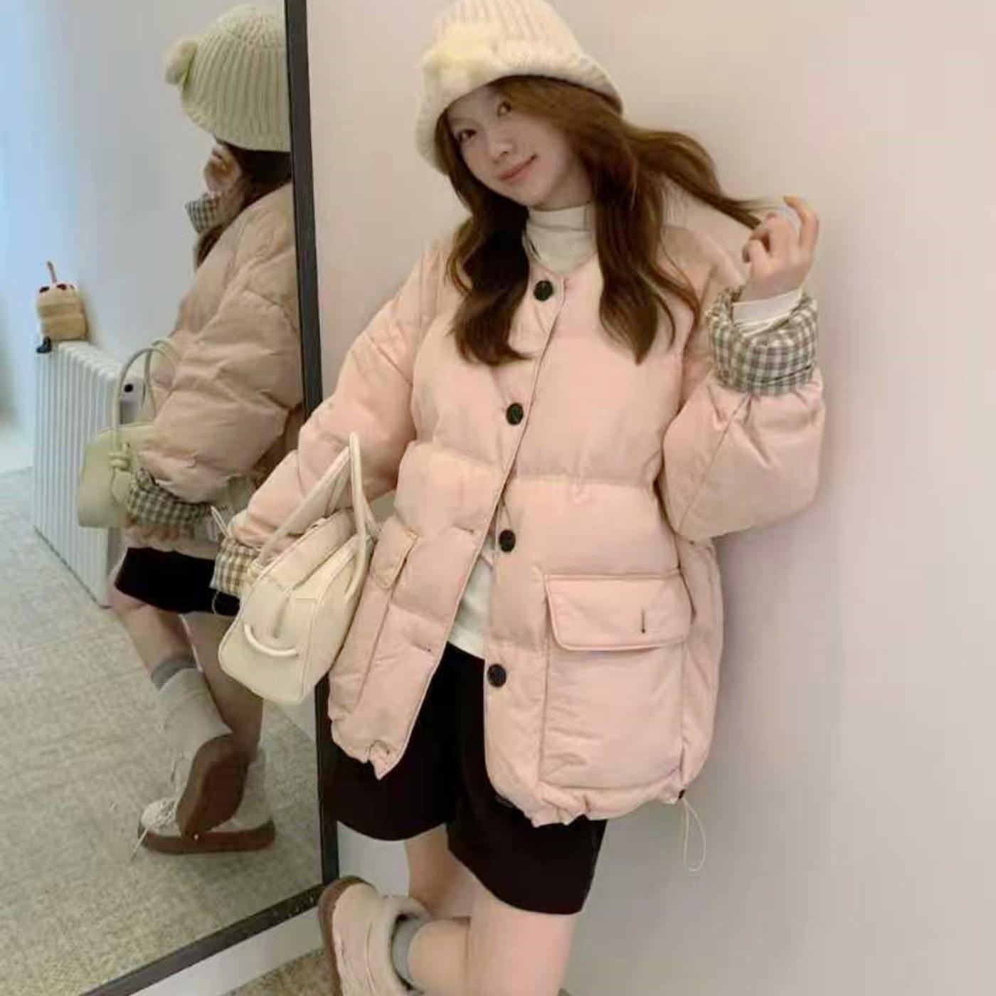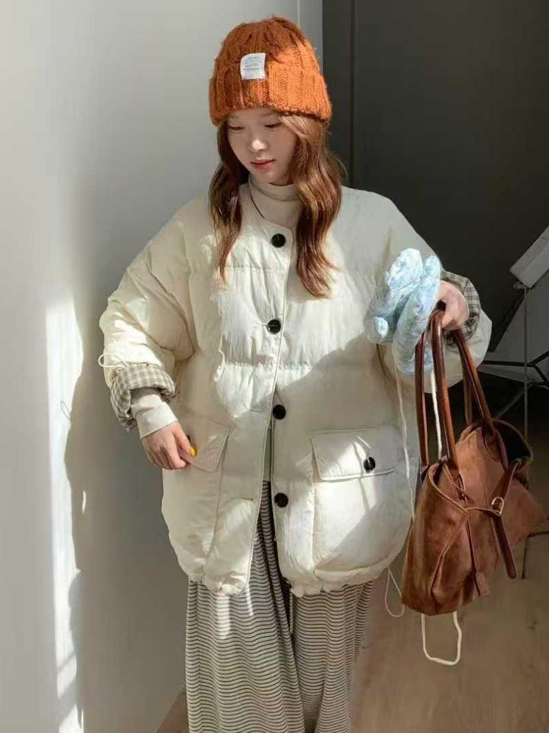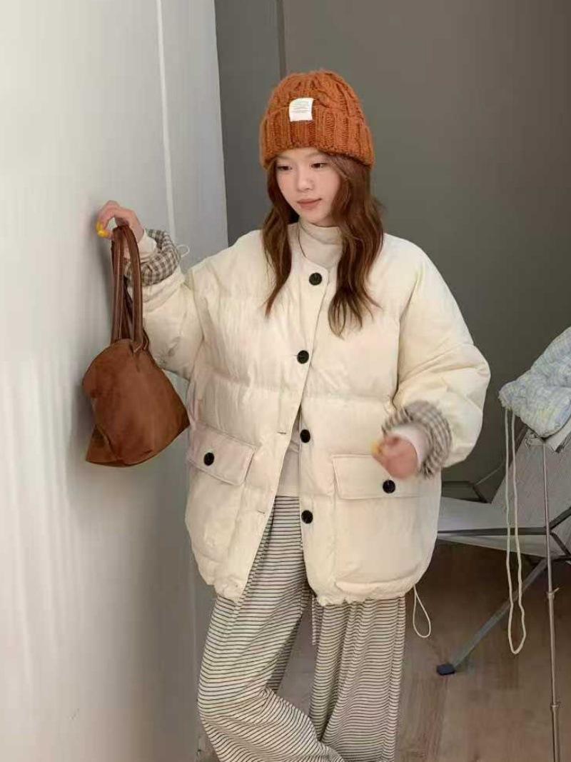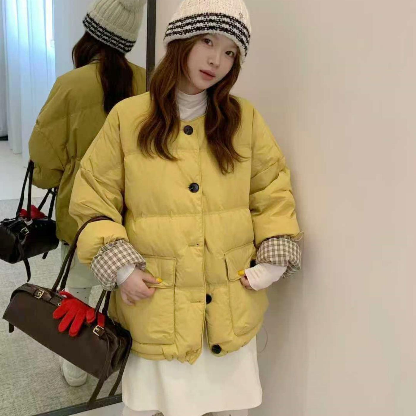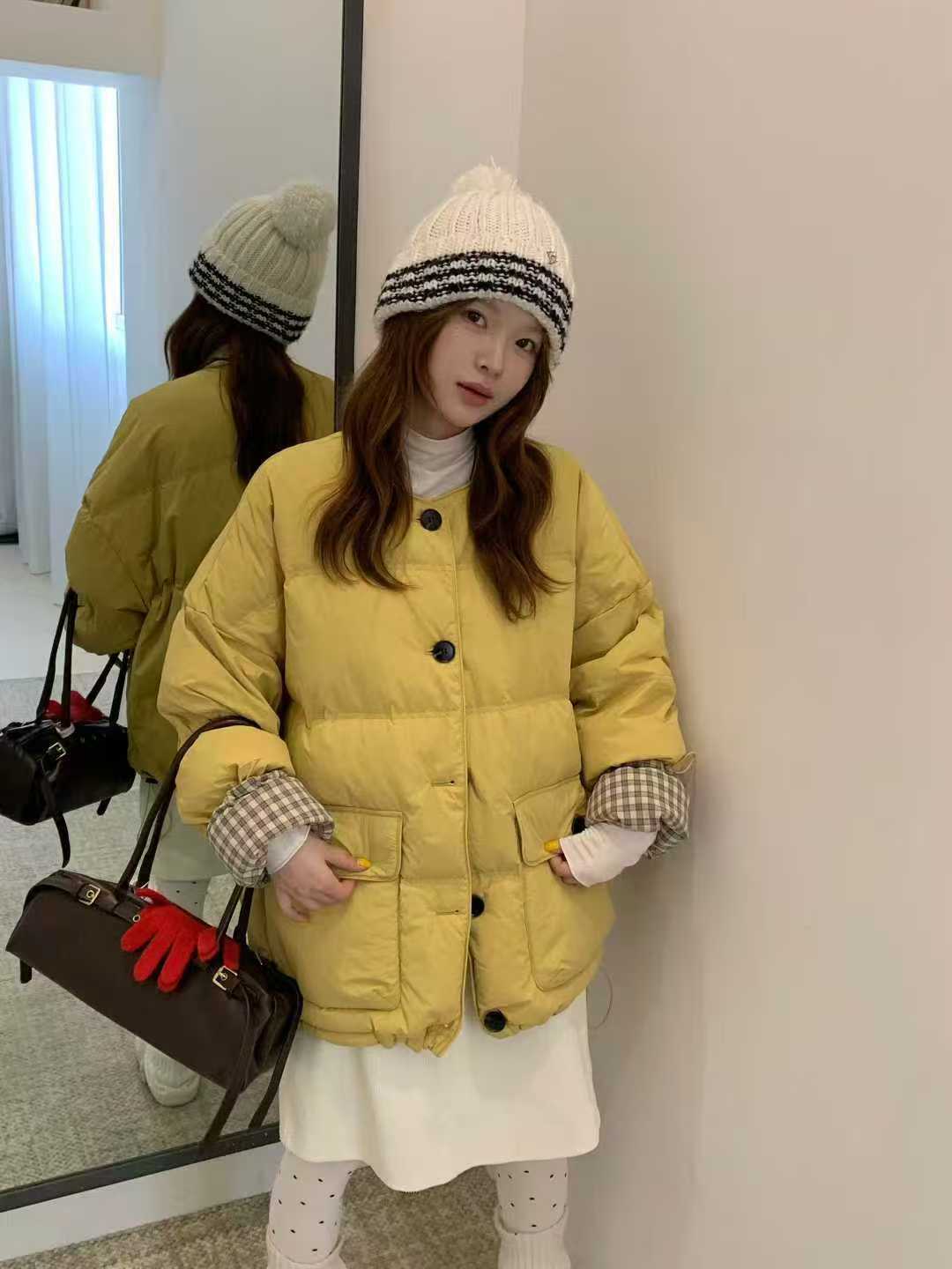 Chamarra de Plumón para Mujer Invierno 2025 Nuevo Coreana Casual Patchwork Tartán Plumón de Pato Blanco Cuello Redondo Abrigo Cálido Chica