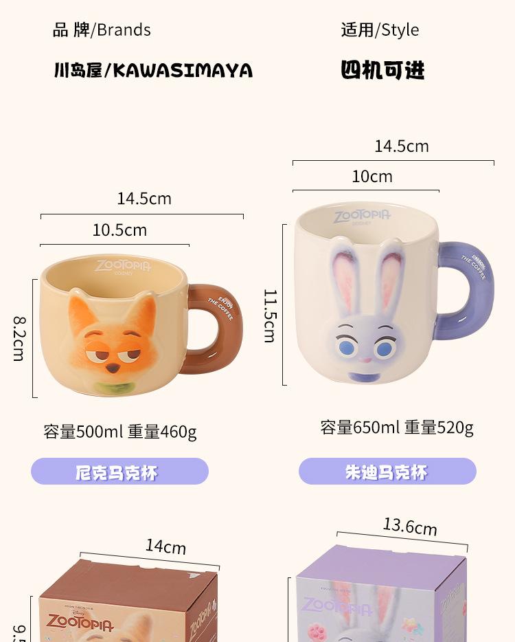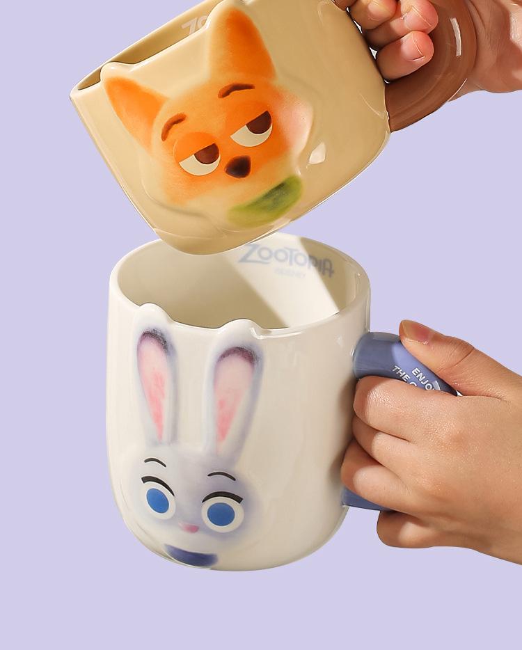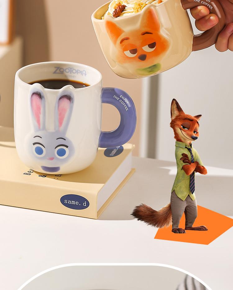 Taza periférica de Zootopia, taza de agua encantadora para parejas, taza de cerámica para pareja, taza para el hogar