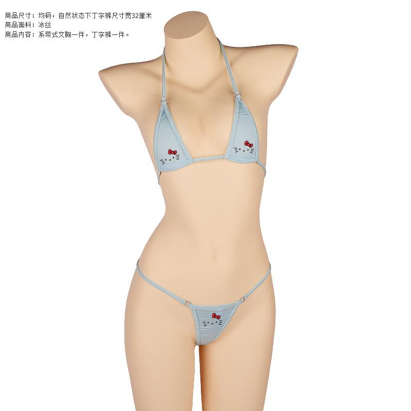 Conjunto de ropa interior sexy KT transfronterizo comercio exterior de tres puntos para mujer ropa interior de tirantes sexy bikini de perspectiva de seda de hielo