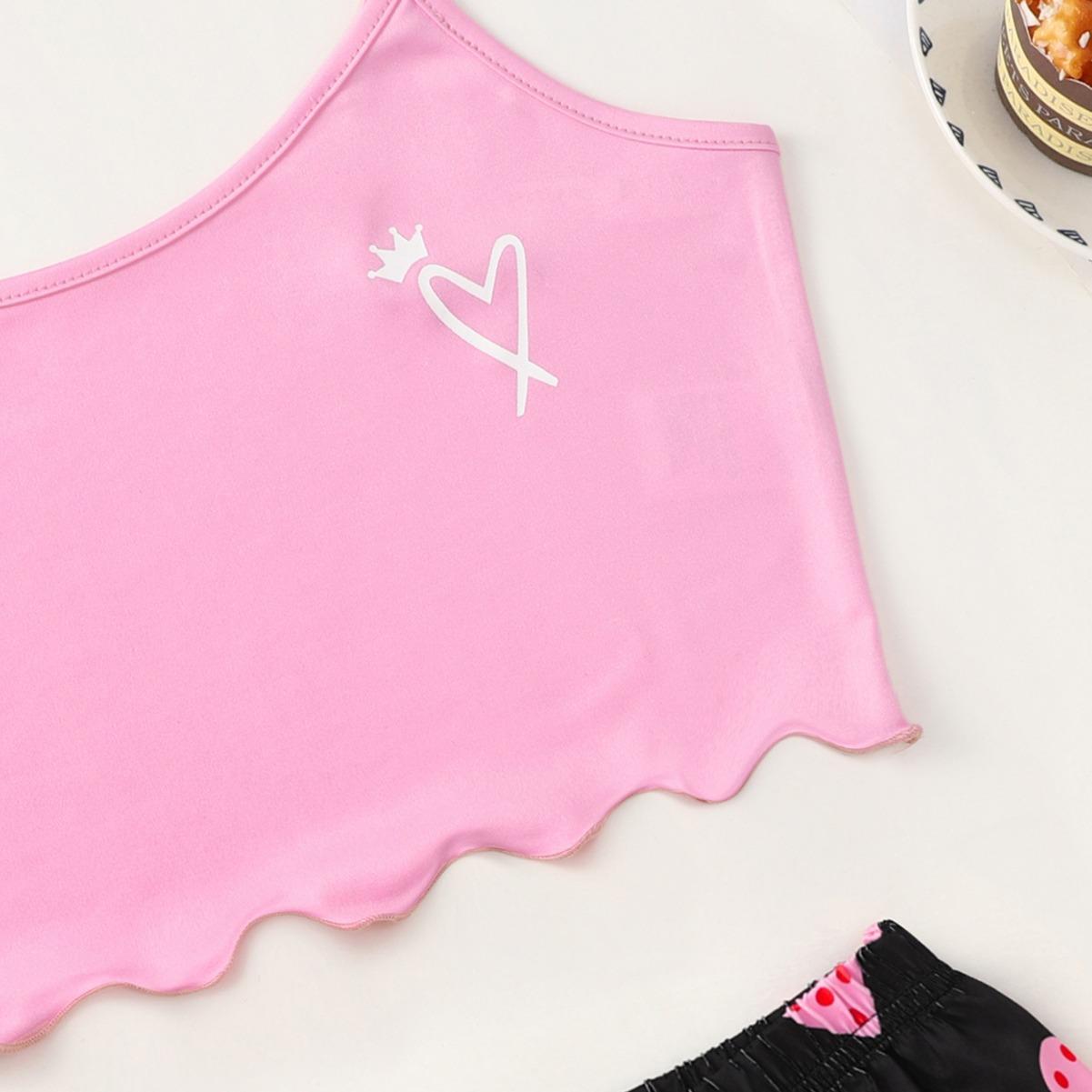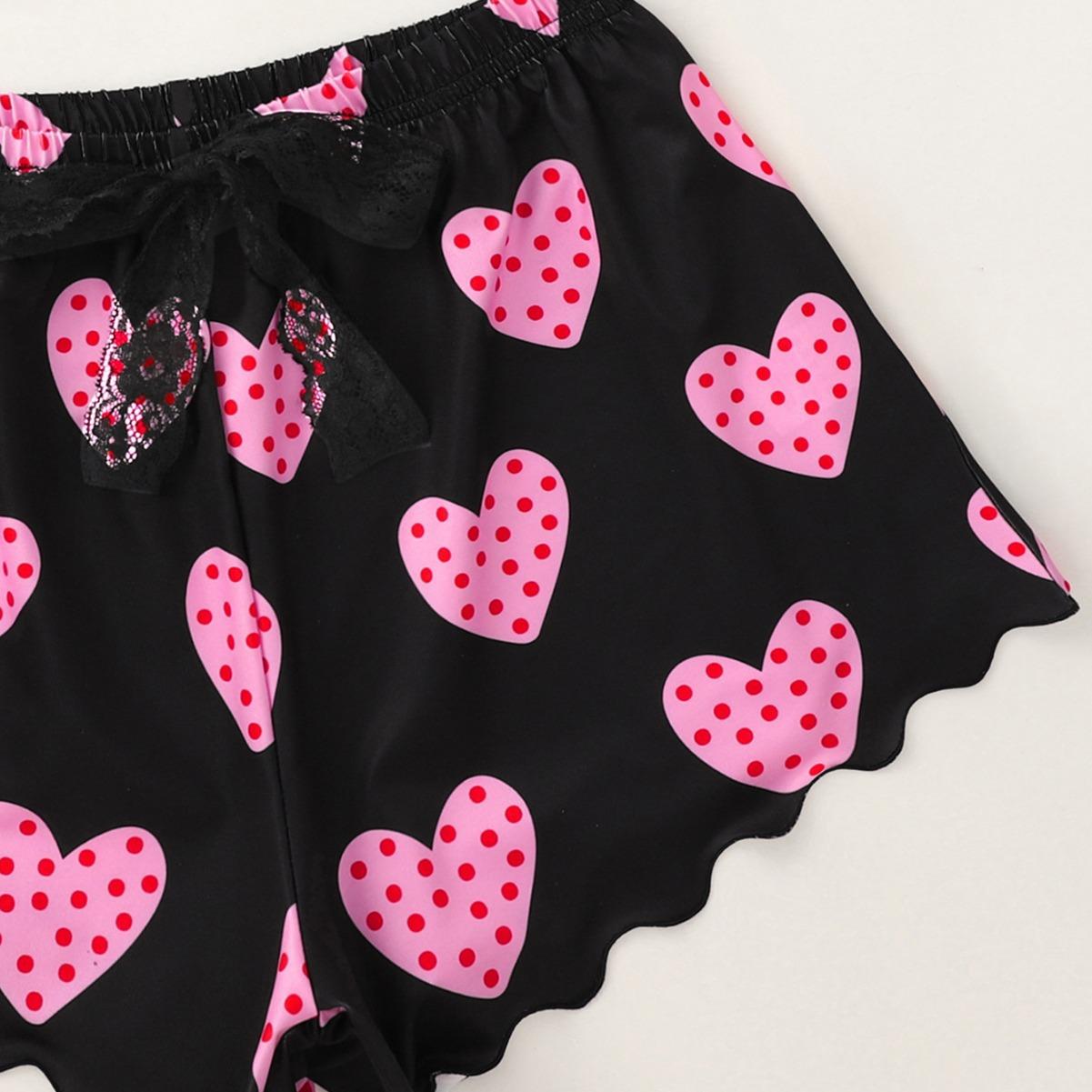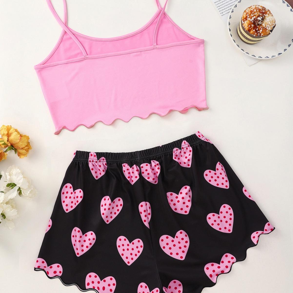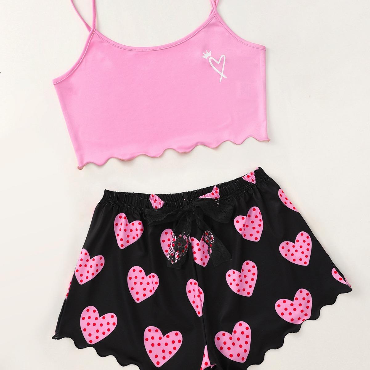 Transfronterizo Amazon Estilo Europeo y Americano Nuevo Top Estampado en Forma de Corazón Shorts Finos con Tirantes Ropa para el Hogar Pijama Traje de Mujer