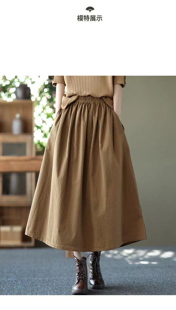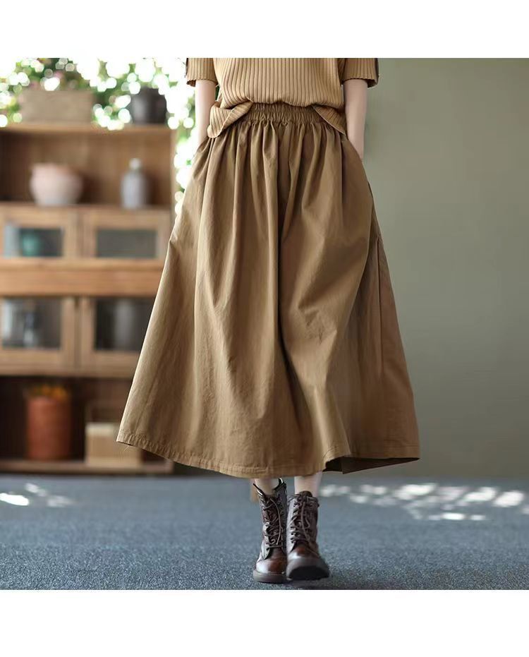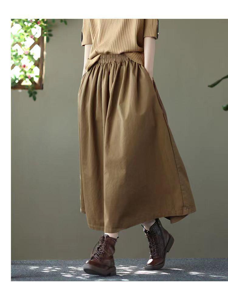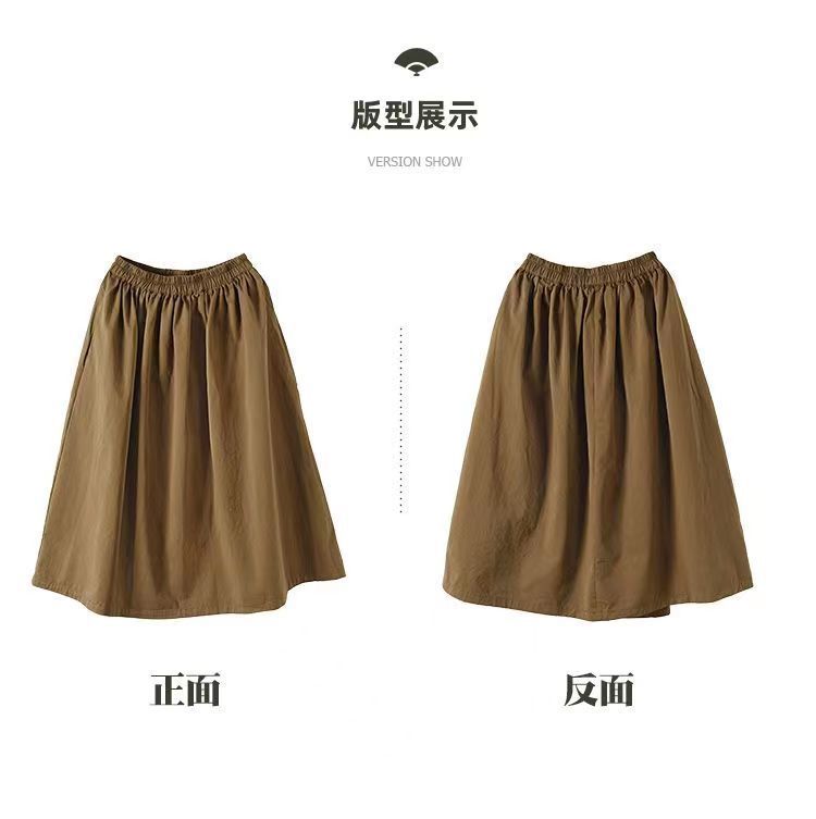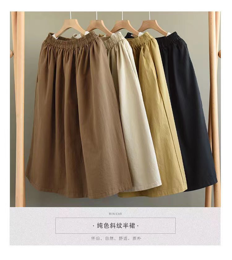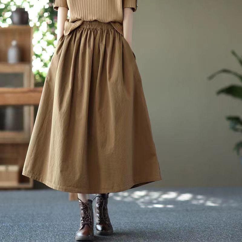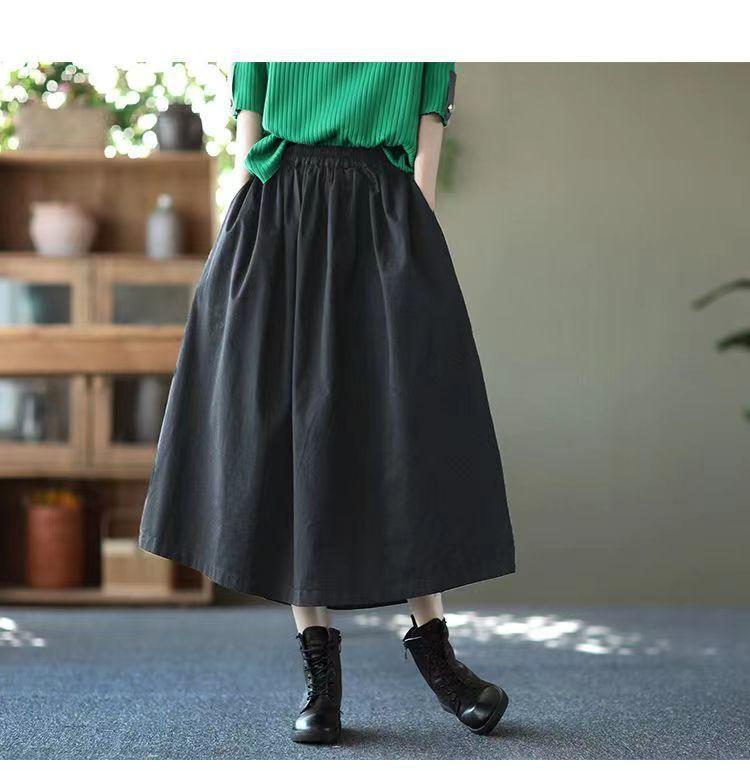 Falda de Algodón Primavera y Verano 2024 Nueva Falda Slim para Mujer Cintura Holgada A Color Sólido Talla Grande Falda Amplia Falda Paraguas