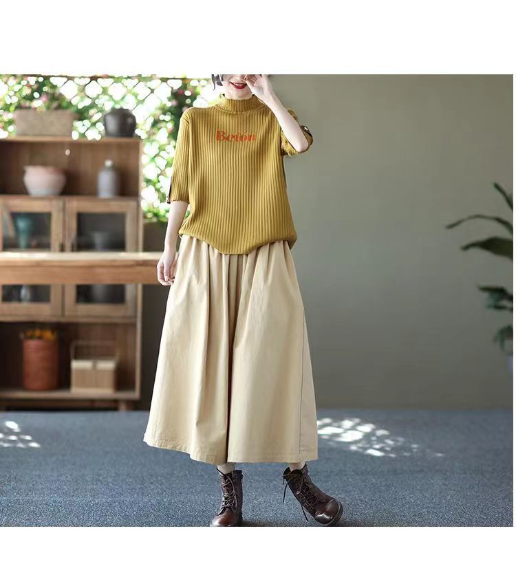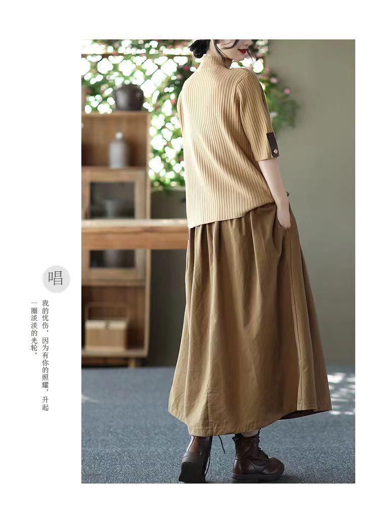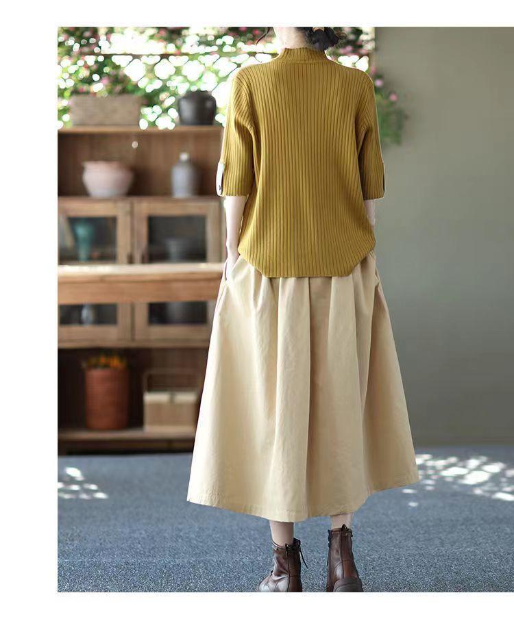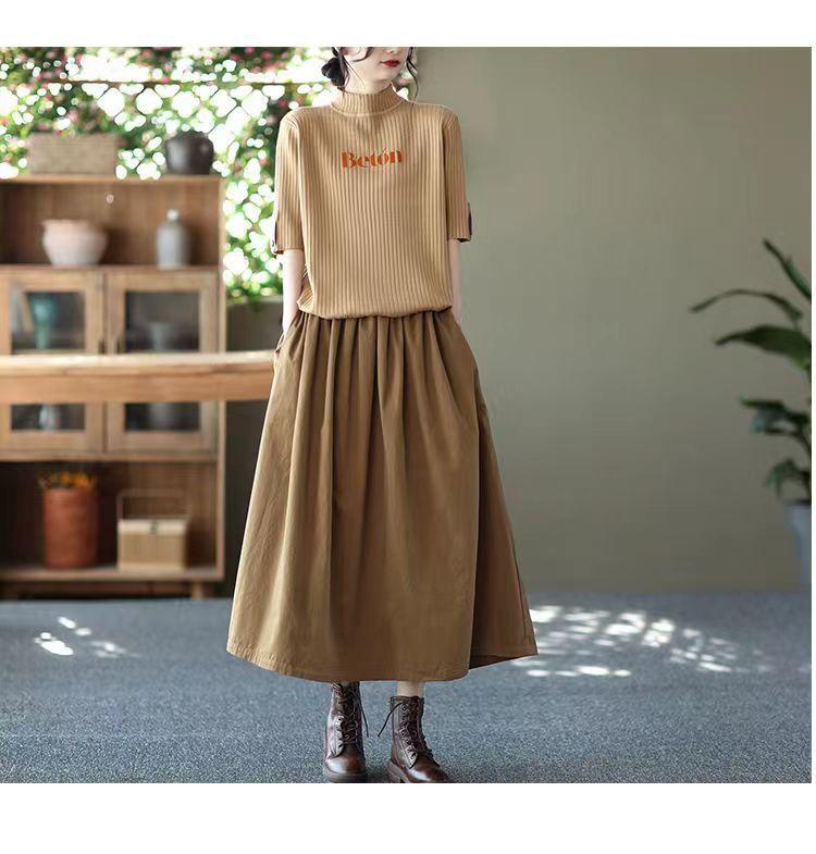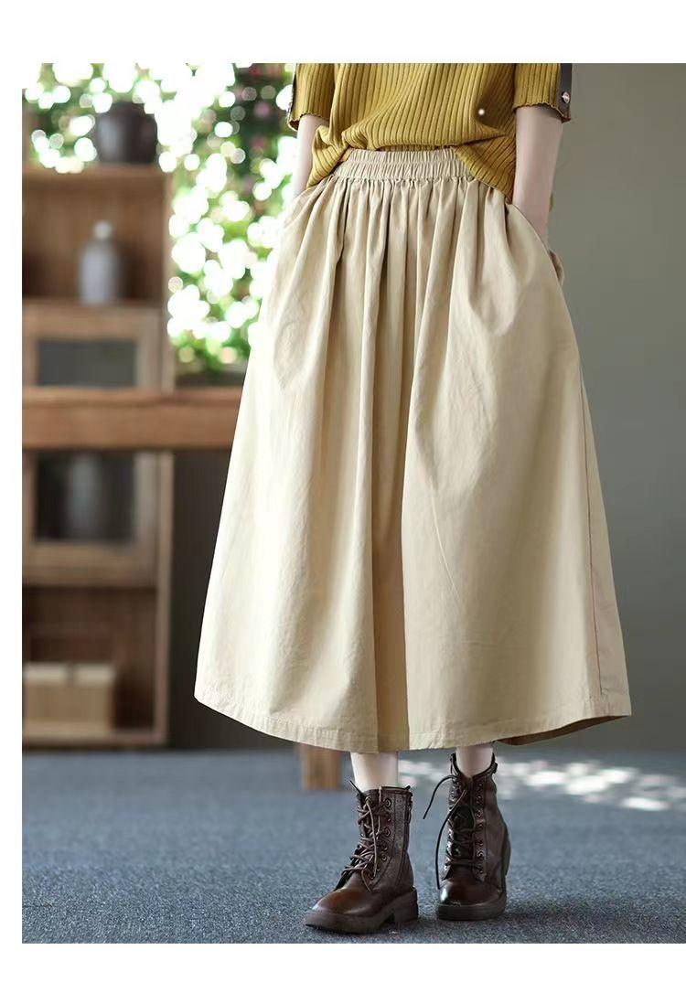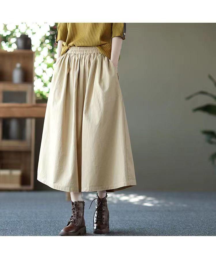 Falda de Algodón Primavera y Verano 2024 Nueva Falda Slim para Mujer Cintura Holgada A Color Sólido Talla Grande Falda Amplia Falda Paraguas