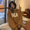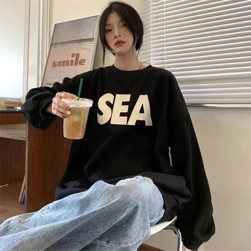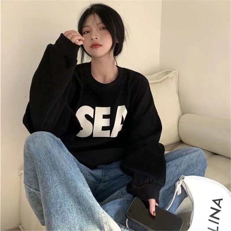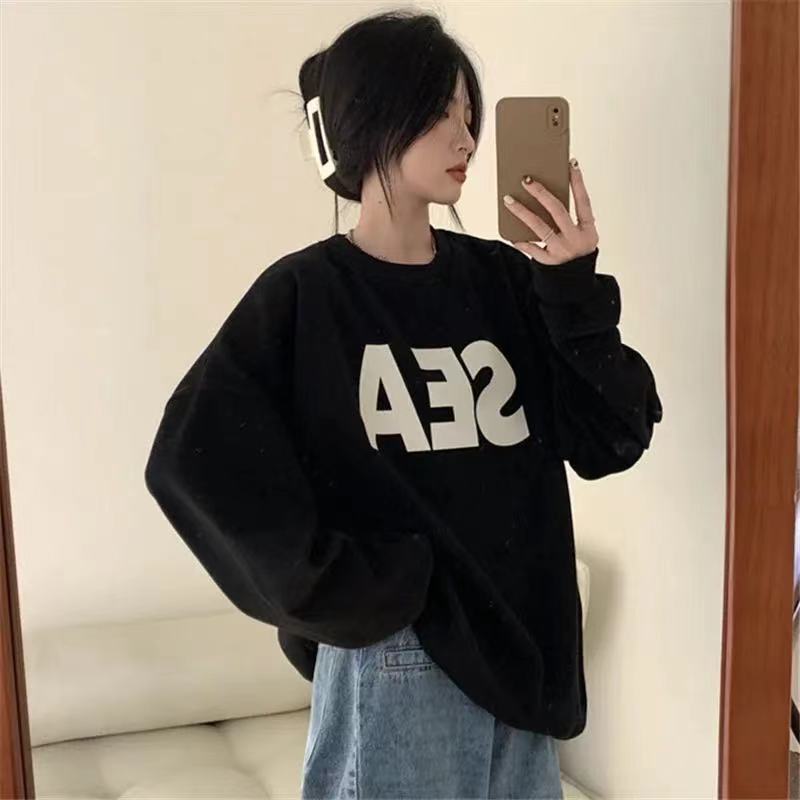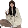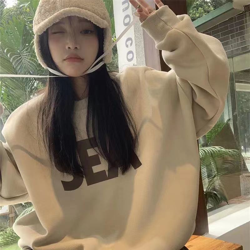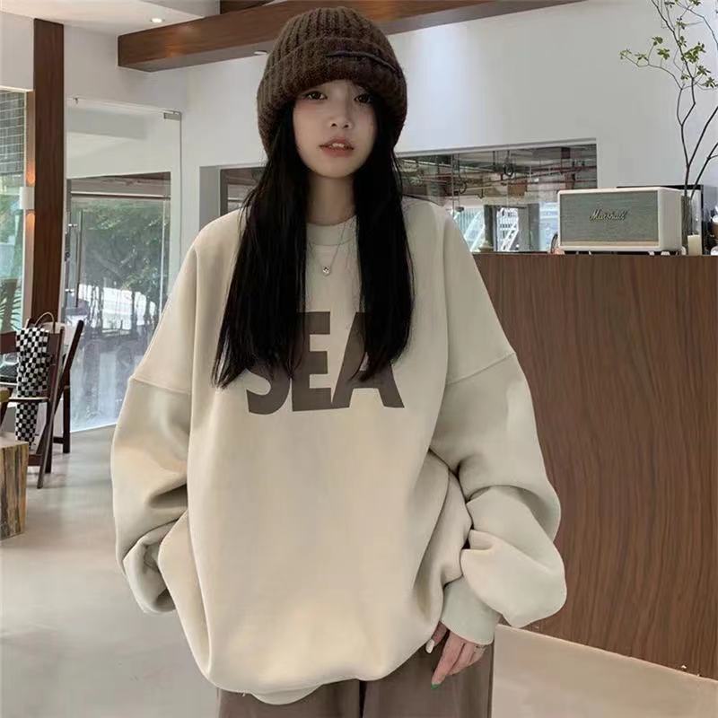 Ropa Exterior con Forro Polar Pilling Sudadera para Mujer Otoño e Invierno Nueva Holgada Versátil Estudiante Manga Larga Estilo Lazy Top de Moda