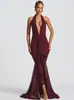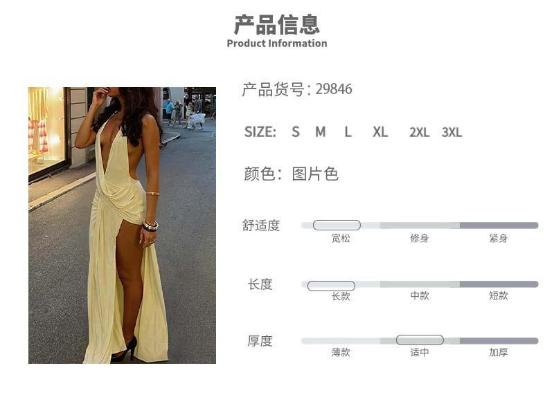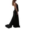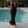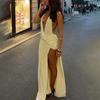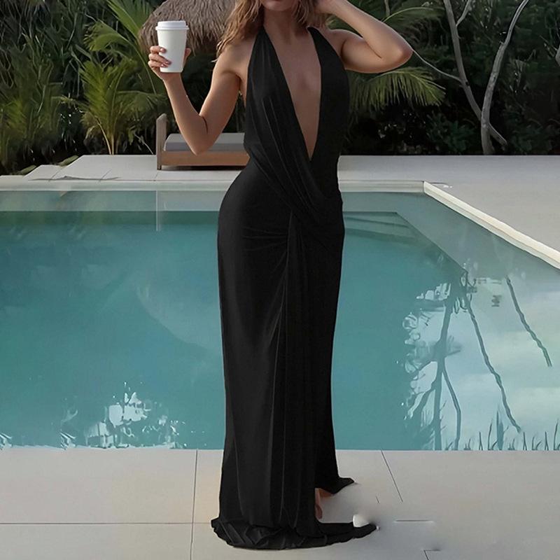 Estilo europeo y americano 2025 verano nuevo ropa de mujer temperamento halter cuello V vestido largo sexy abertura plisado espalda descubierta