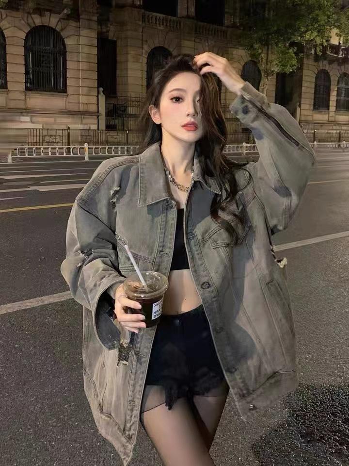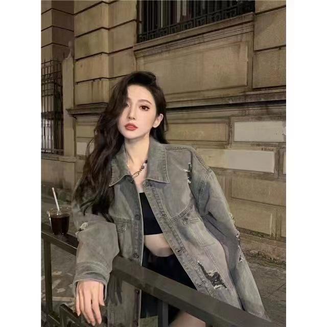 Chaqueta de Mezclilla Retro de Marca de Moda Abrigo Mujer Otoño 2022 Nuevo Suelto Versátil Lavado Roto Cárdigan Top Marea