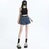 [Cinturón de Regalo] Shorts de Mezclilla Retro Azules de Cintura Alta para Mujer Primavera y Verano 2024 Nuevo Diseño Sensación Abertura Pantalones Forma A