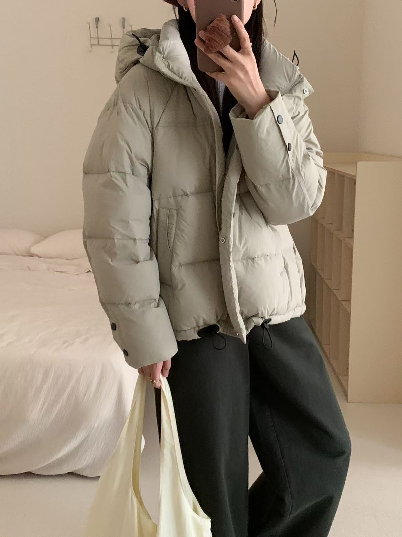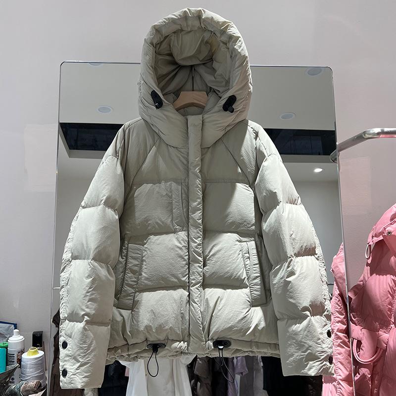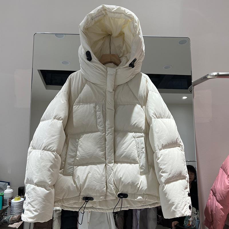 Invierno Nuevo Coreano Chaqueta de Plumón con Capucha para Mujer Una Mano Largo Suelto Engrosado Ropa de Pan Pequeño Cálido Chaqueta de Plumón de Pato Blanco