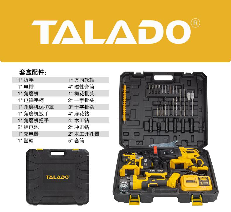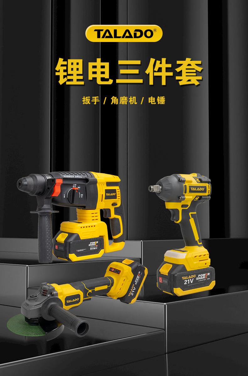 Set de tres piezas de herramienta eléctrica de iones de litio de grado industrial de venta caliente transfronteriza 21V llave sin escobillas amoladora angular martillo eléctrico juego combinado