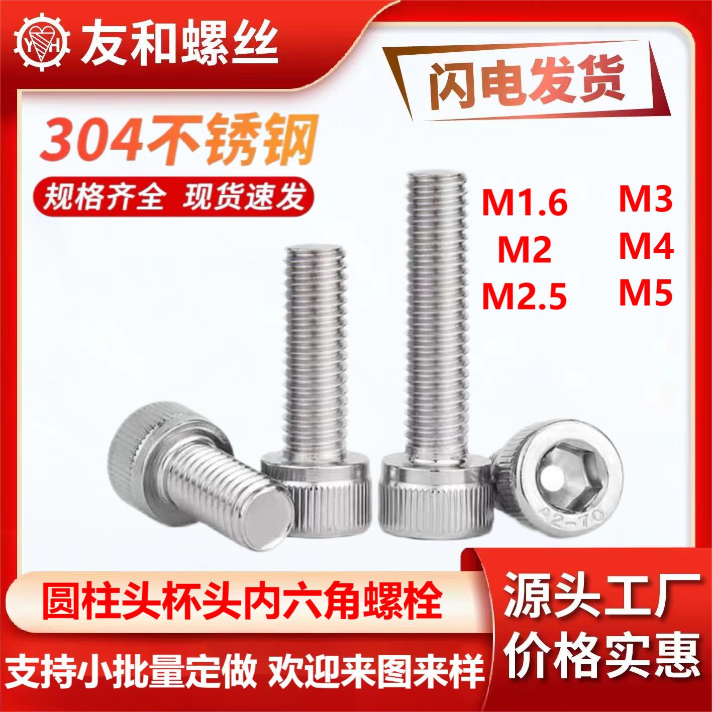 Tornillos de Acero Inoxidable 304 Cabeza de Copa Hexágono Interior Moleteada Cabeza Cilíndrica Hexágono Interior Pernos al por Mayor