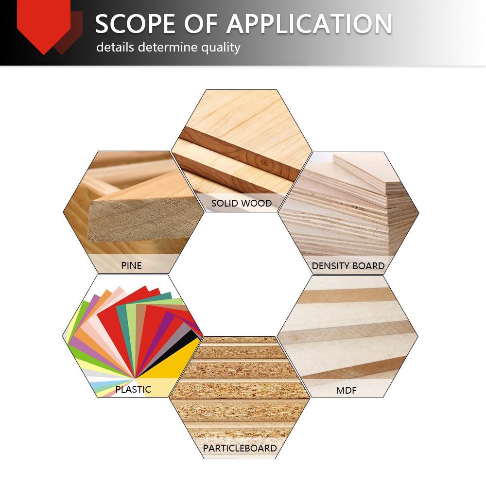 Los mangos de las fresas para carpintería incluyen: 3 mm, 6 mm, 1/4" (6,35 mm), 8 mm, 12 mm, 1/2" (12,7 mm)