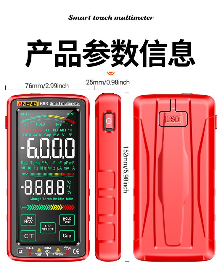 Multímetro Digital de Alta Precisión Totalmente Inteligente Anti-Quemaduras Electricista No Necesita Cambiar de Marcha Carga Medidor Totalmente Automático