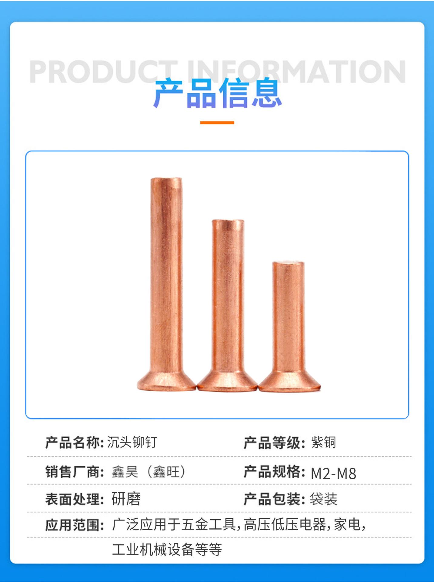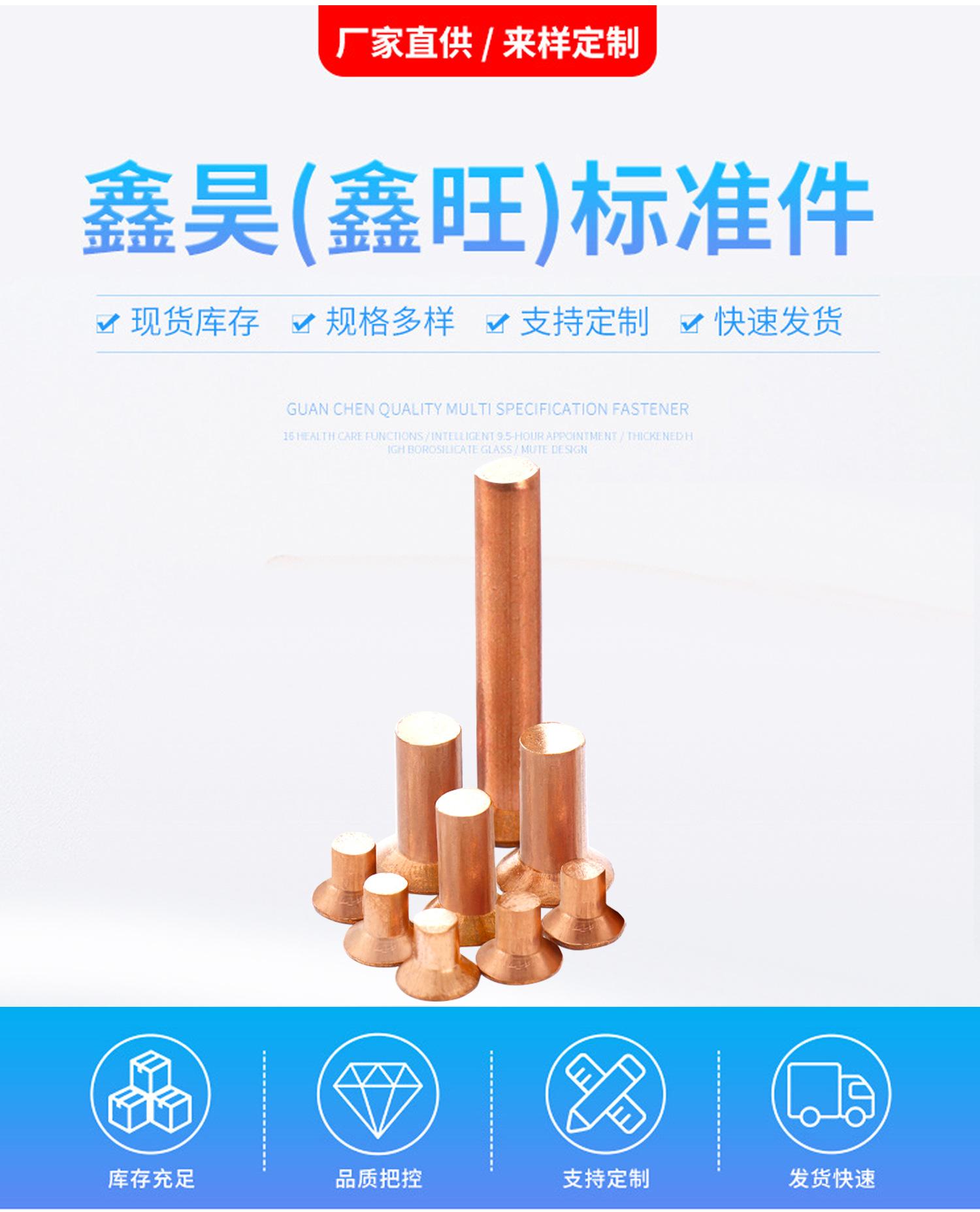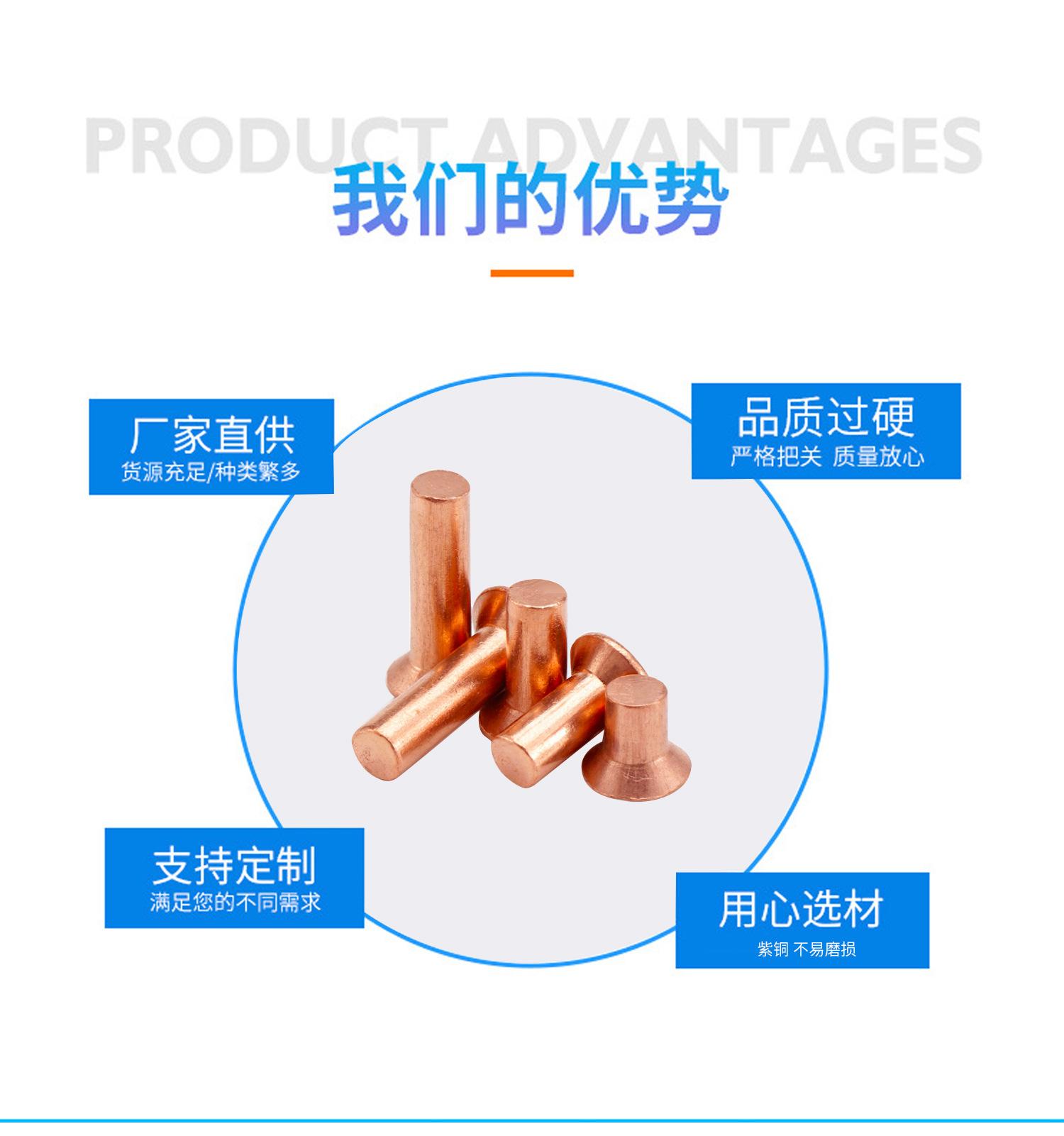 Remaches de Cobre de Cabeza Avellanada Sólidos de Cobre Puro T2T3 Remaches de Percusión Embutidos Clavos para Placas de Identificación Personalización del Fabricante Fuera de Estándar