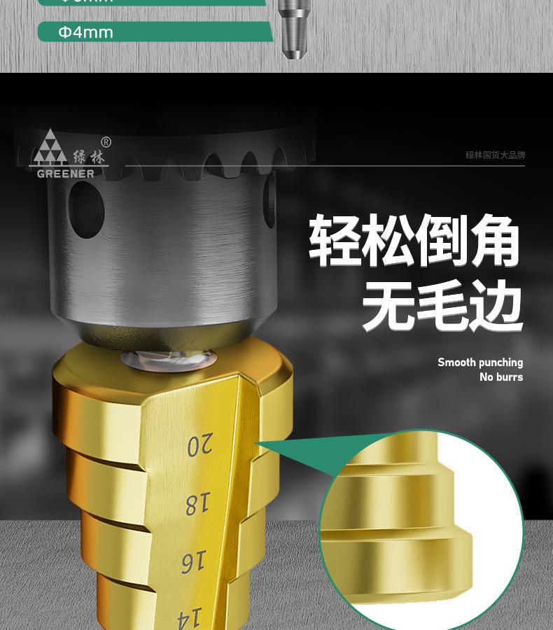 Juego de Brocas Pagoda Serradas Bosque Verde Perforación Agujero Avellanado Artefacto Carpintería Metal Tablero de Madera Acero Inoxidable Escalera