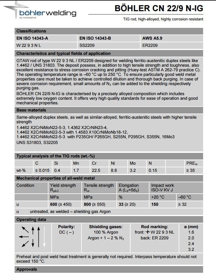 BOHLER FOX 2209 R/2.5mm, BOHLER FOX 2209 R/3.2mm, BOHLER FOX 2209 R/4.0mm, BOHLER FOX 2209 R/5.0mm