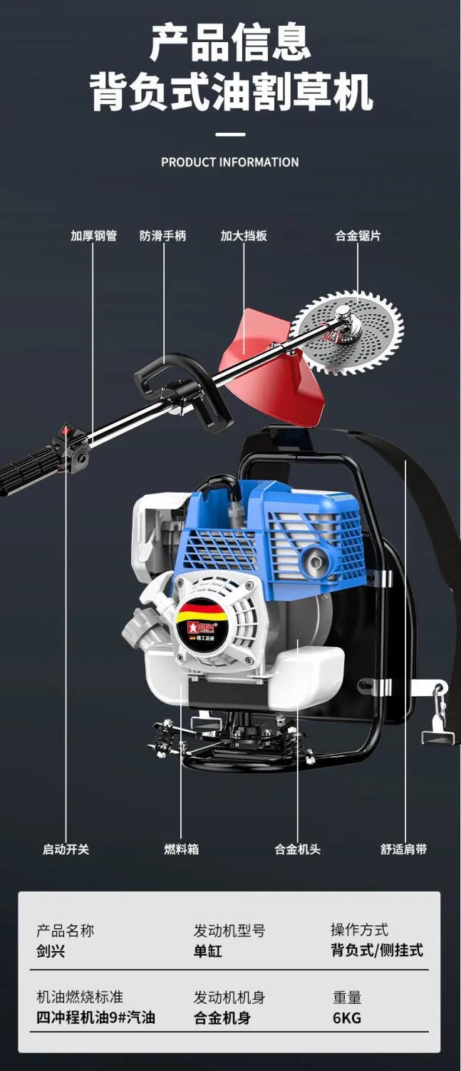 Top equipped with 4-stroke pure gasoline backpack [mowing] function
