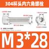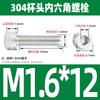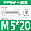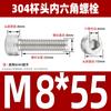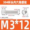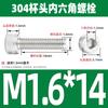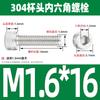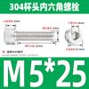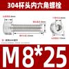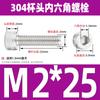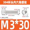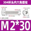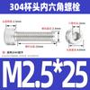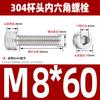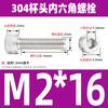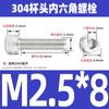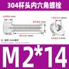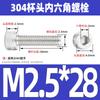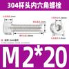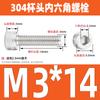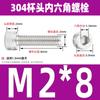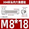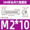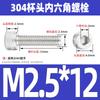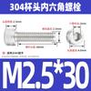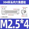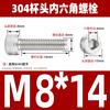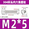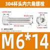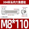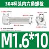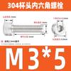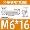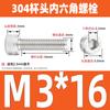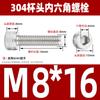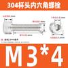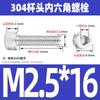 Estándar nacional 304 acero inoxidable cabeza de copa hexagonal Perno cabeza cilíndrica tornillo hexagonal M2M3M4M5M6M8M10