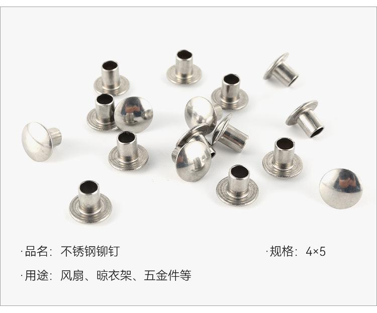Remache semihueco de cabeza redonda de acero inoxidable 304, remache de alta resistencia, remache hueco, remache sub-madre no estándar