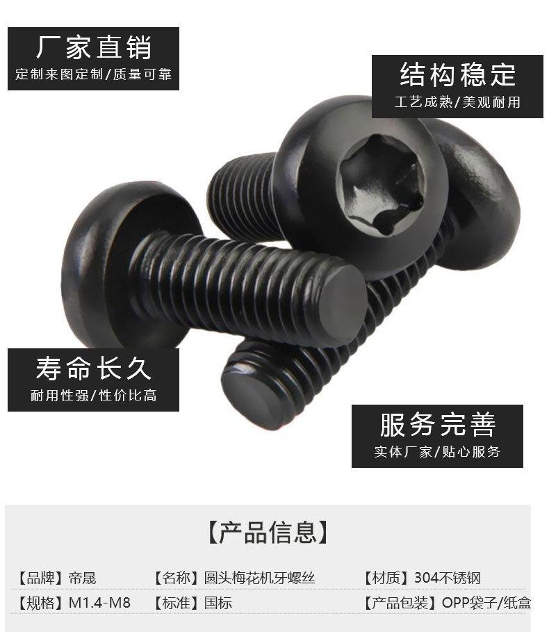 Acero Inoxidable 304 Negro Tornillo de Máquina Torx Perno de Cabeza Redonda Cabeza Pan Tornillo de Zinc Negro M1.4/M3M4M5M6M8