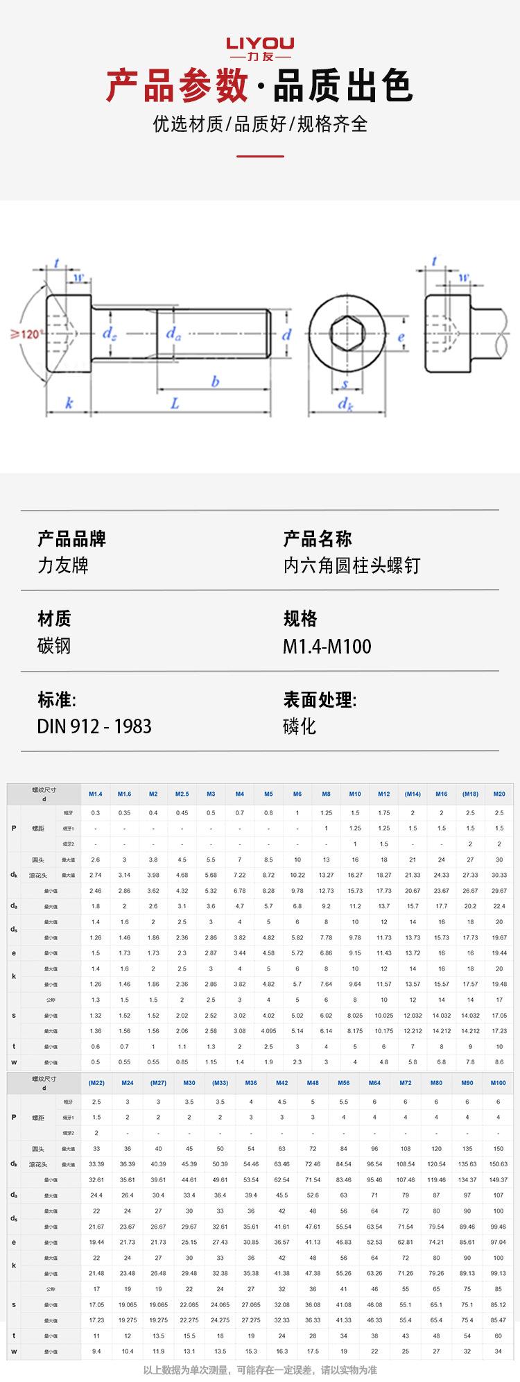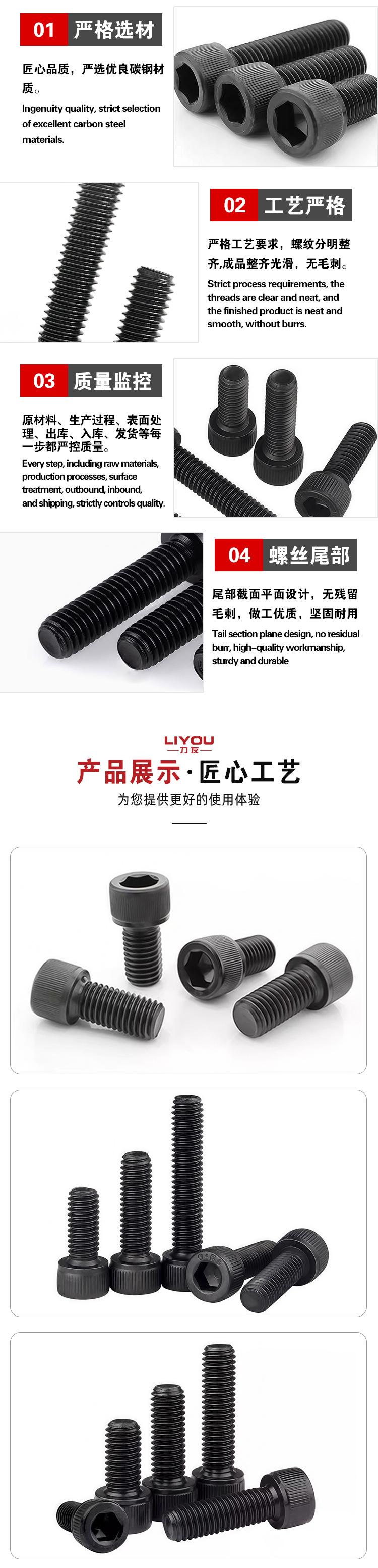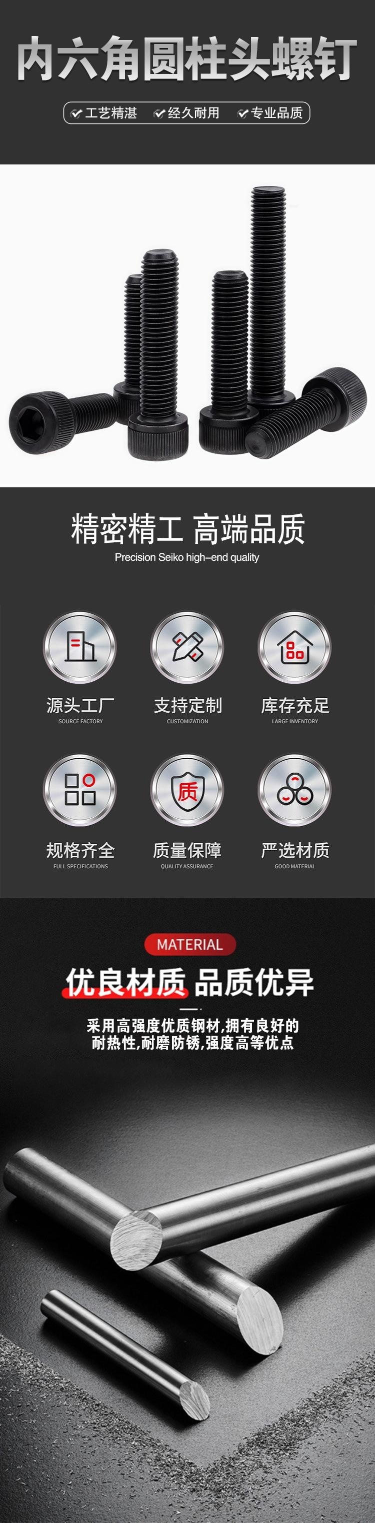 Tornillo de Cabeza Cilíndrica Hexagonal de Alta Resistencia Grado 12.9 Din912 Pernos Acero Aleado Fosfatado Tornillo de Cabeza Cilíndrica Rosca Completa