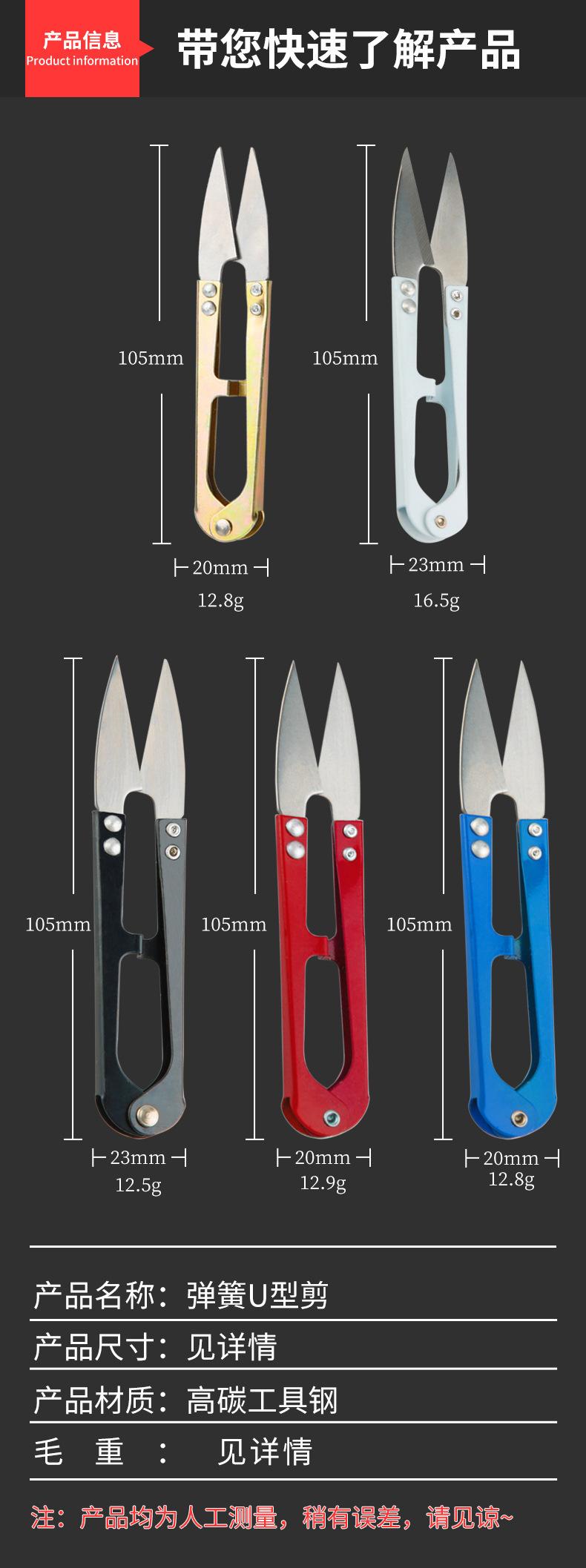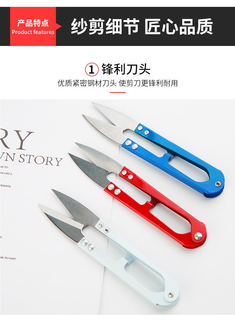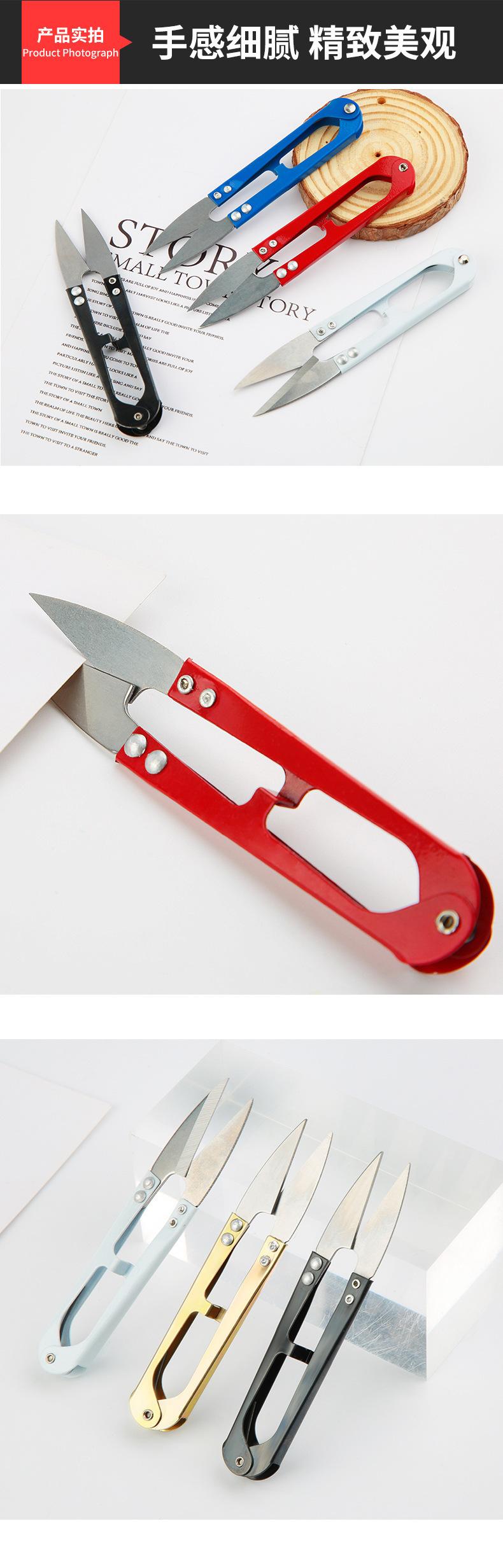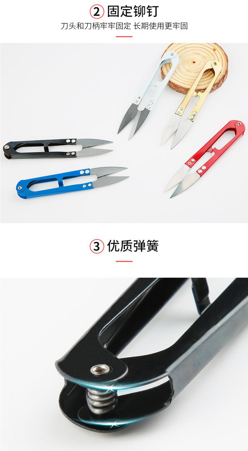 Tijeras de metal con resorte en forma de U al por mayor, tijeras para hilo de ropa para punto de cruz, tijeras para línea de pesca, tijeras pequeñas para uso diario en el hogar