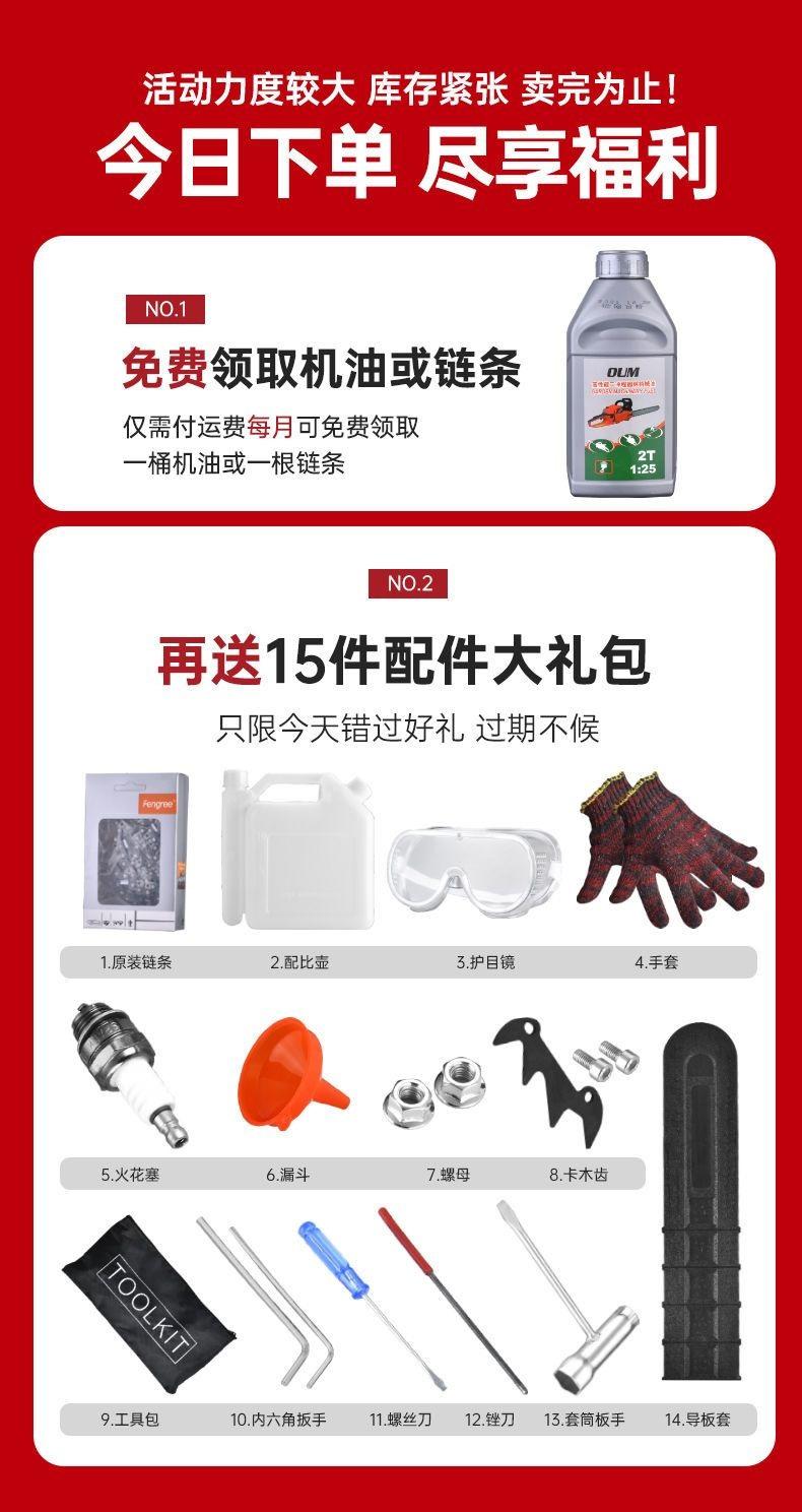 [99% praise rate] special for logging 20inch + free 2 guide plates + 4 chains + gift bag