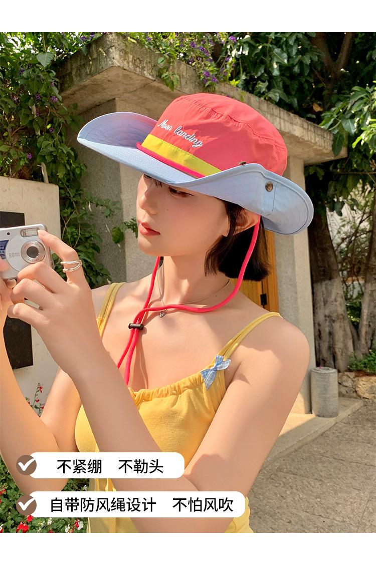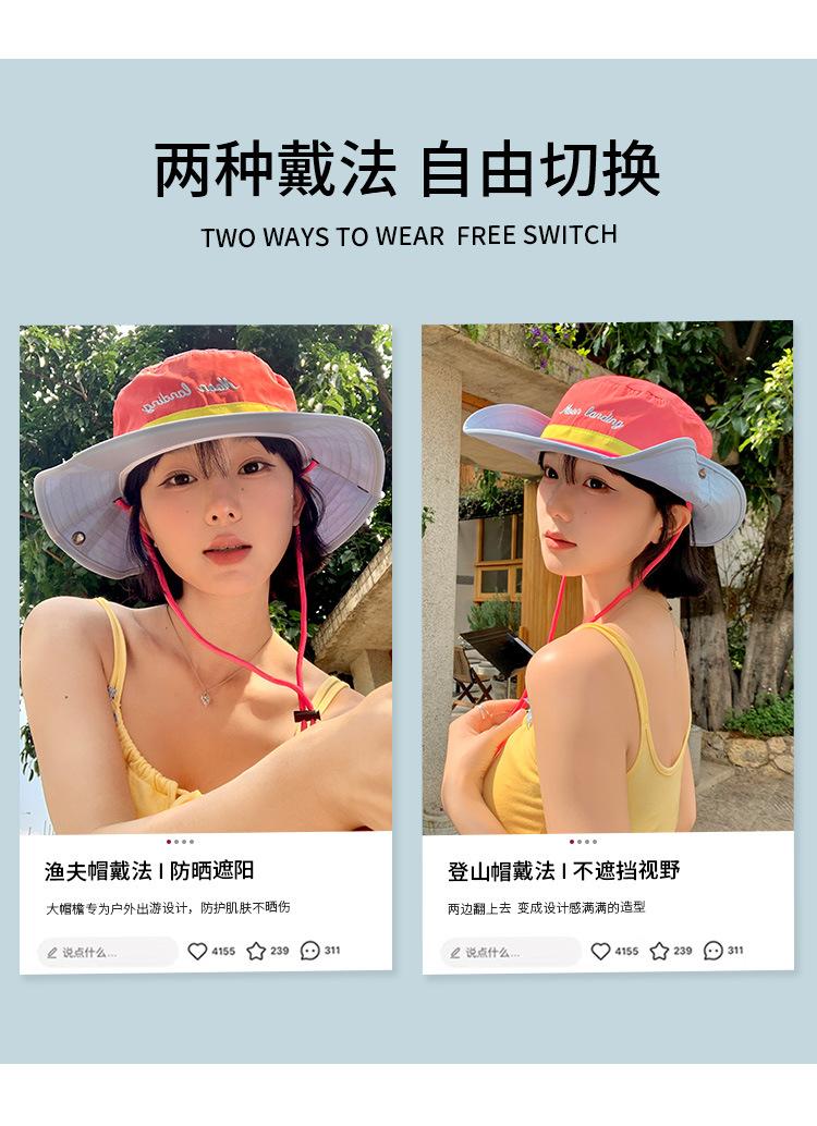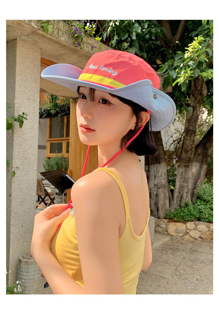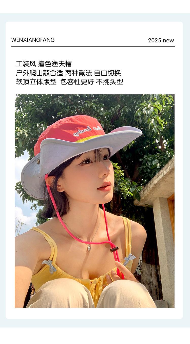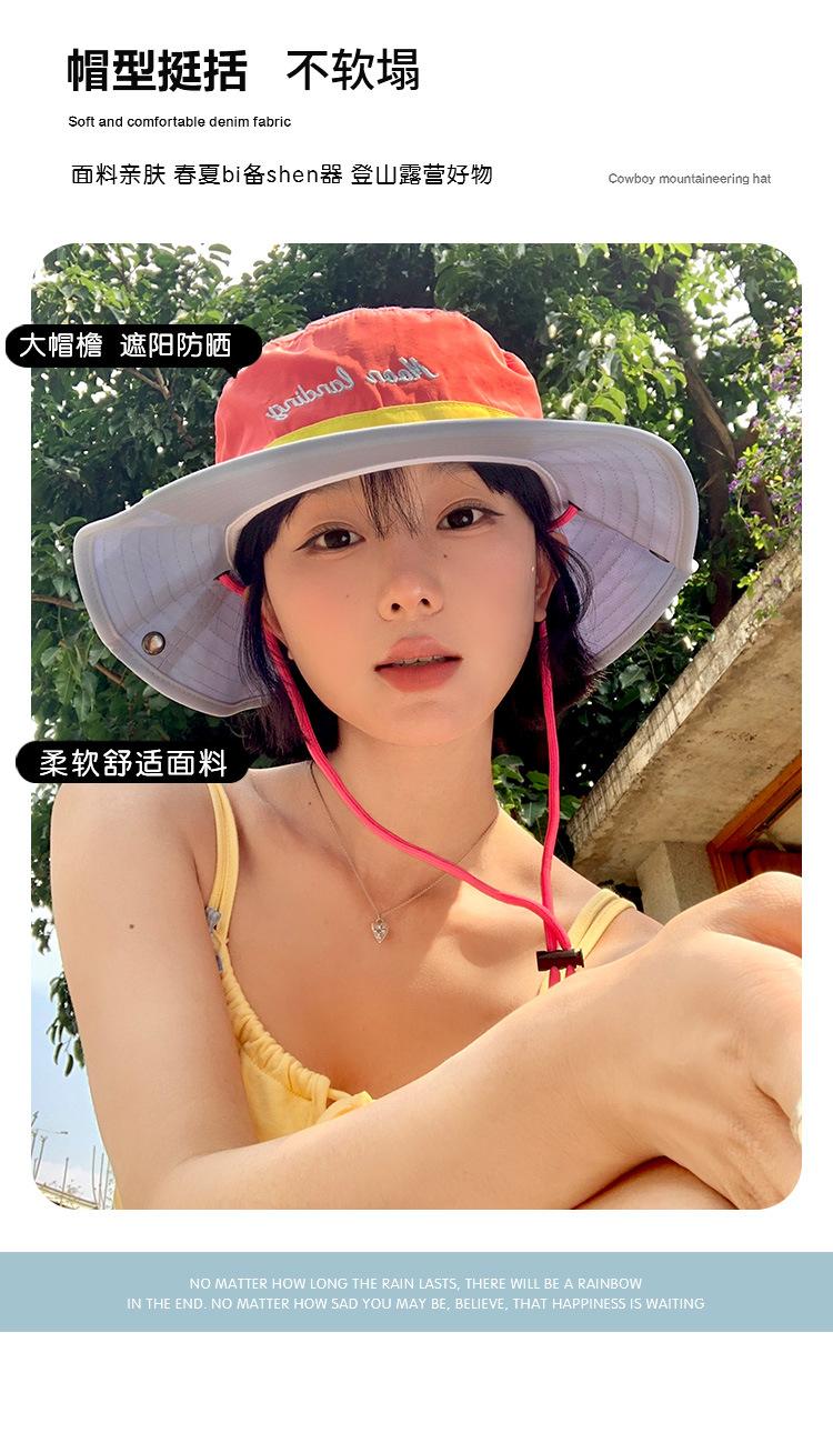 Sombrero de Senderismo para Exterior con Bordado de Letras Retro Americano para Mujer Primavera y Verano Ala Ancha Protección Solar Sombrero de Pescador Delgado