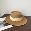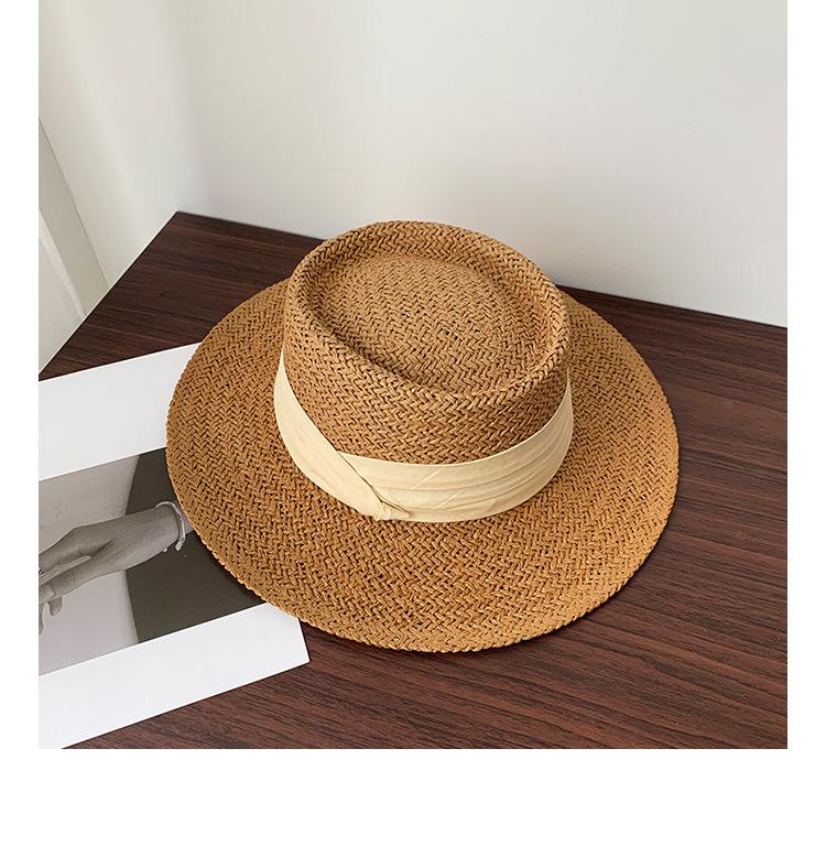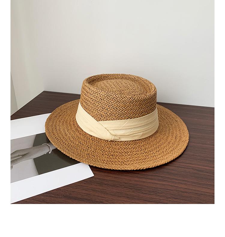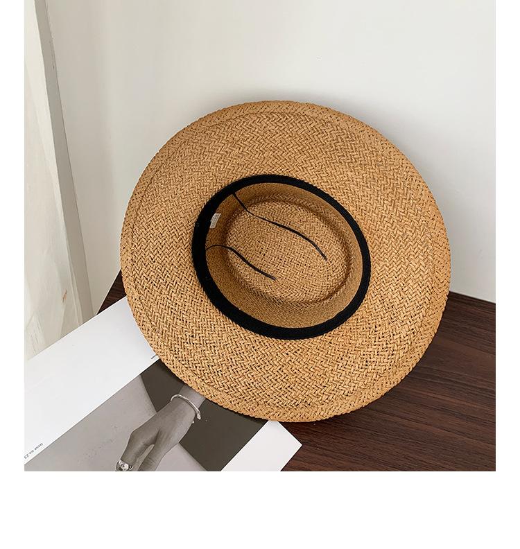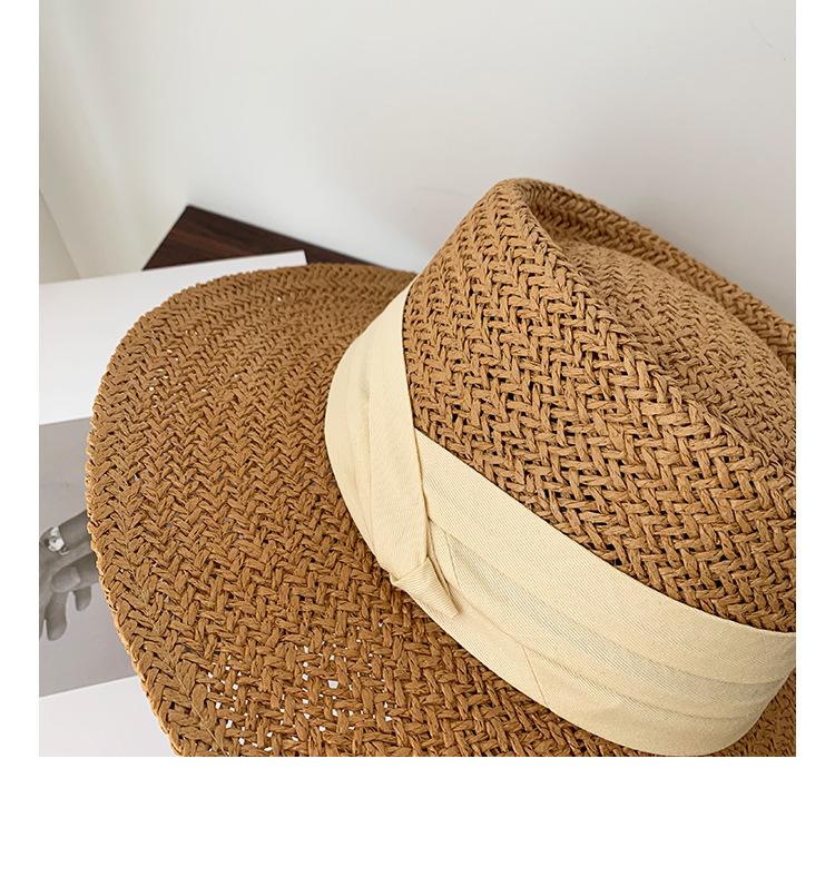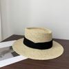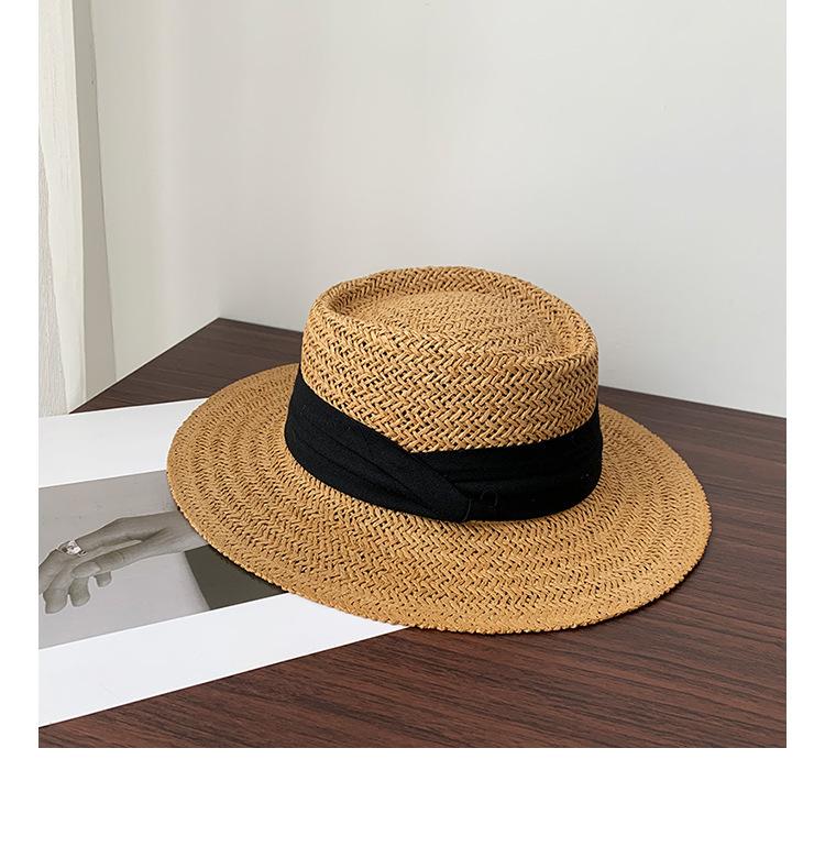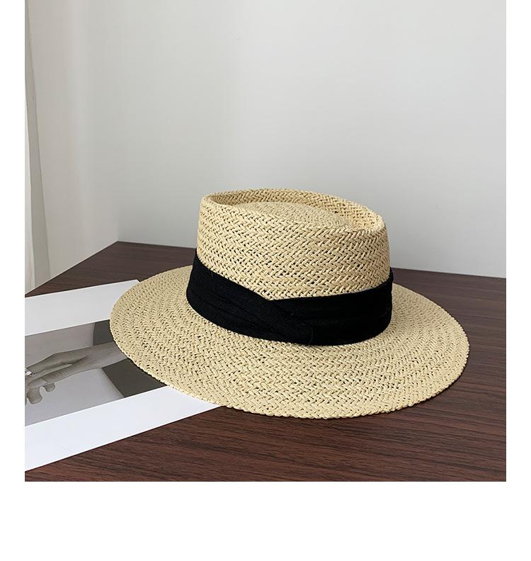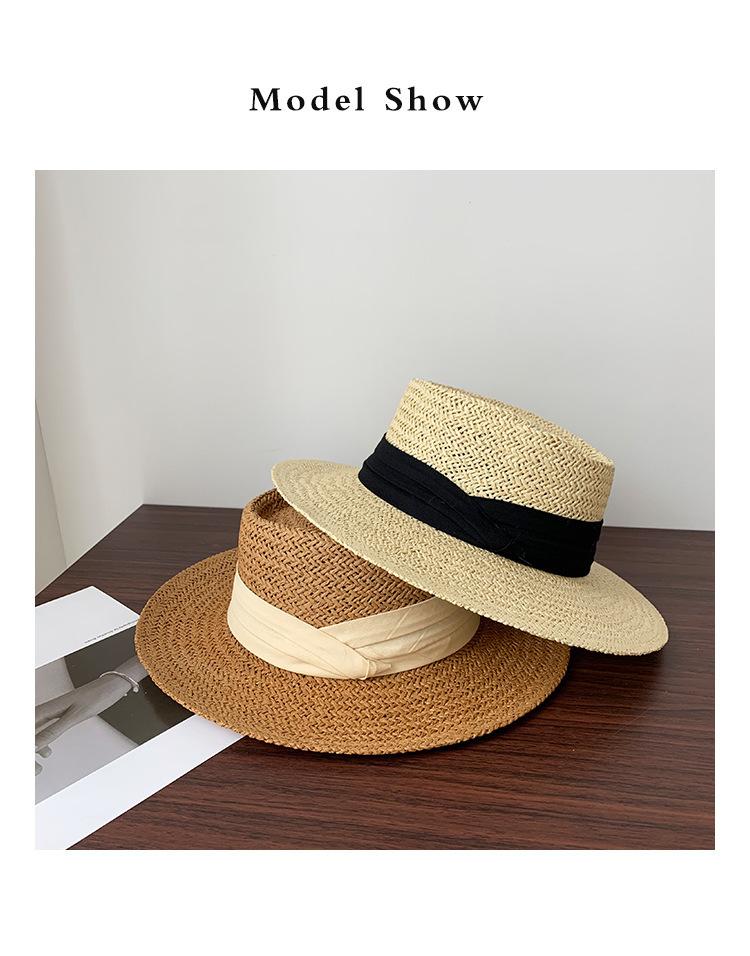 Sombrero Pequeño de Copa Plana, Sombrero de Paja, Sombrero de Playa, Sombrero de Sol de Verano para Mujer para la Playa, Sombrero de Ala Ancha, Sombrero de Paja, Sombrero Retro Francés