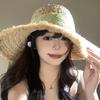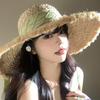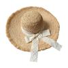 Sombrero de Paja Rafi con Lazo Francés para Mujer Verano Ala Ancha Sombrilla Protector Solar Sombrero Vacaciones Playa Orilla del Mar Sombrero Tejido