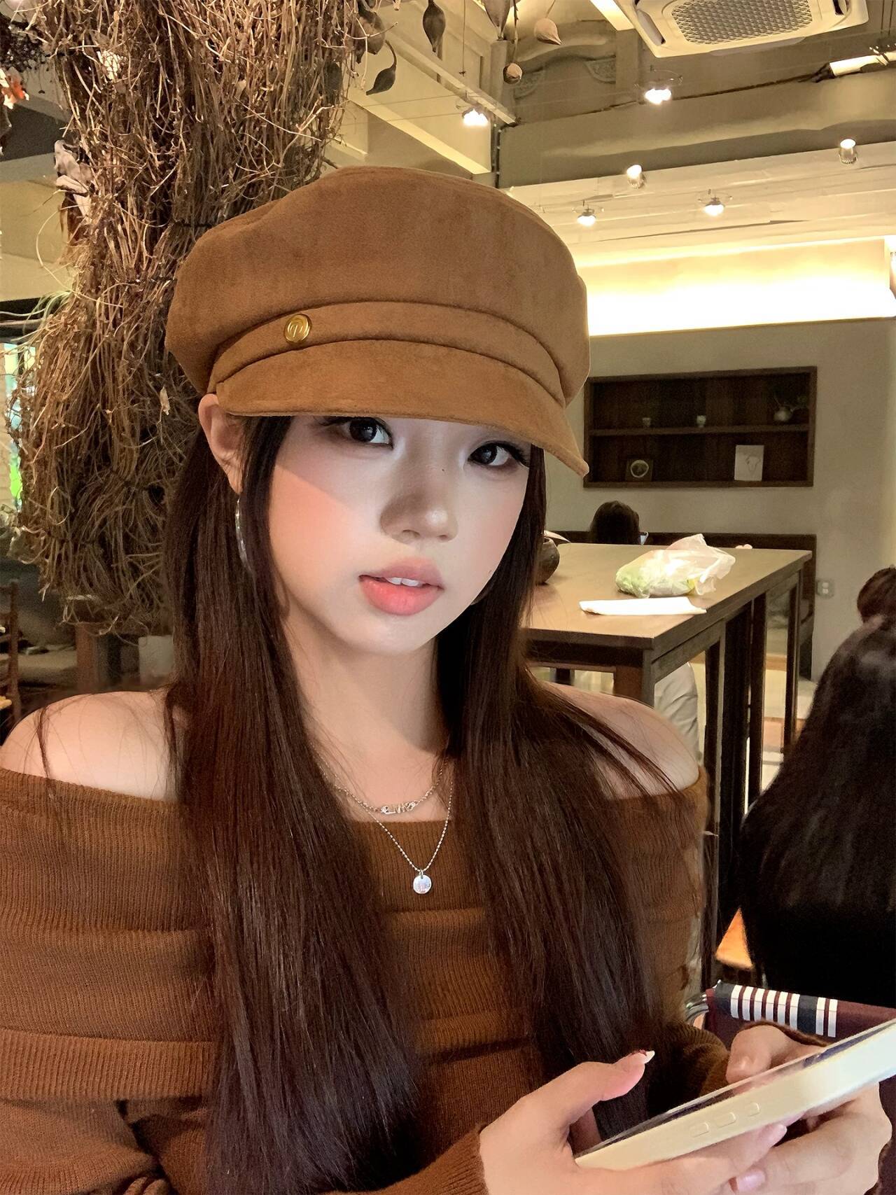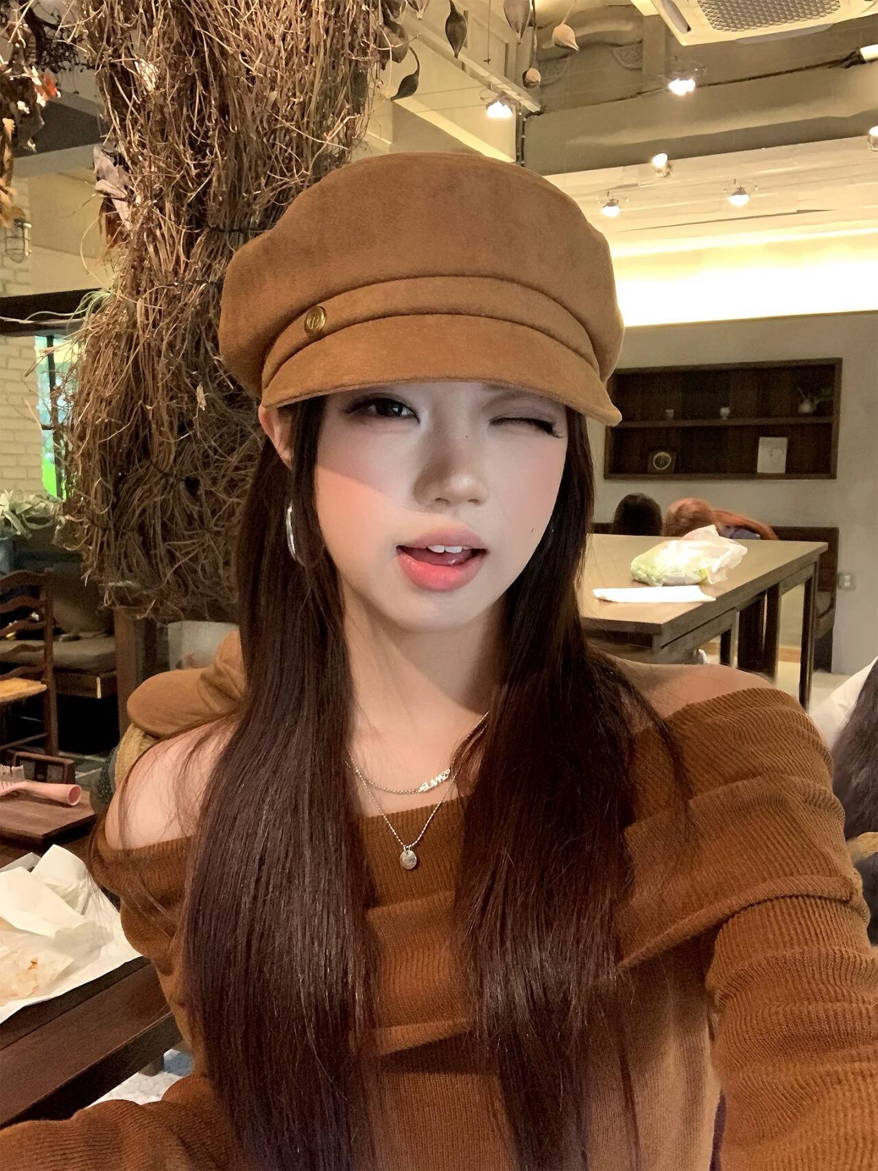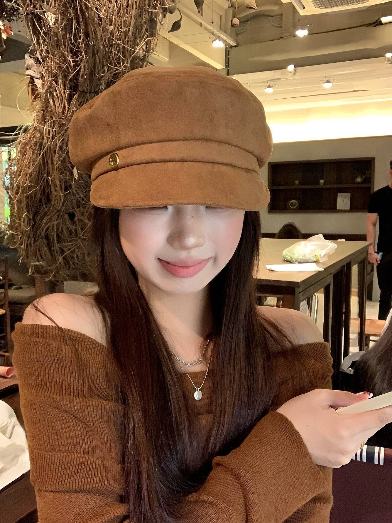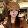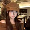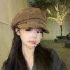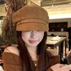 Boina octogonal marrón estilo británico para mujer estilo coreano artística retro versátil para cabeza grande sombrero de pintor gorra de repartidor