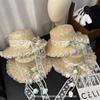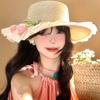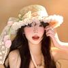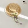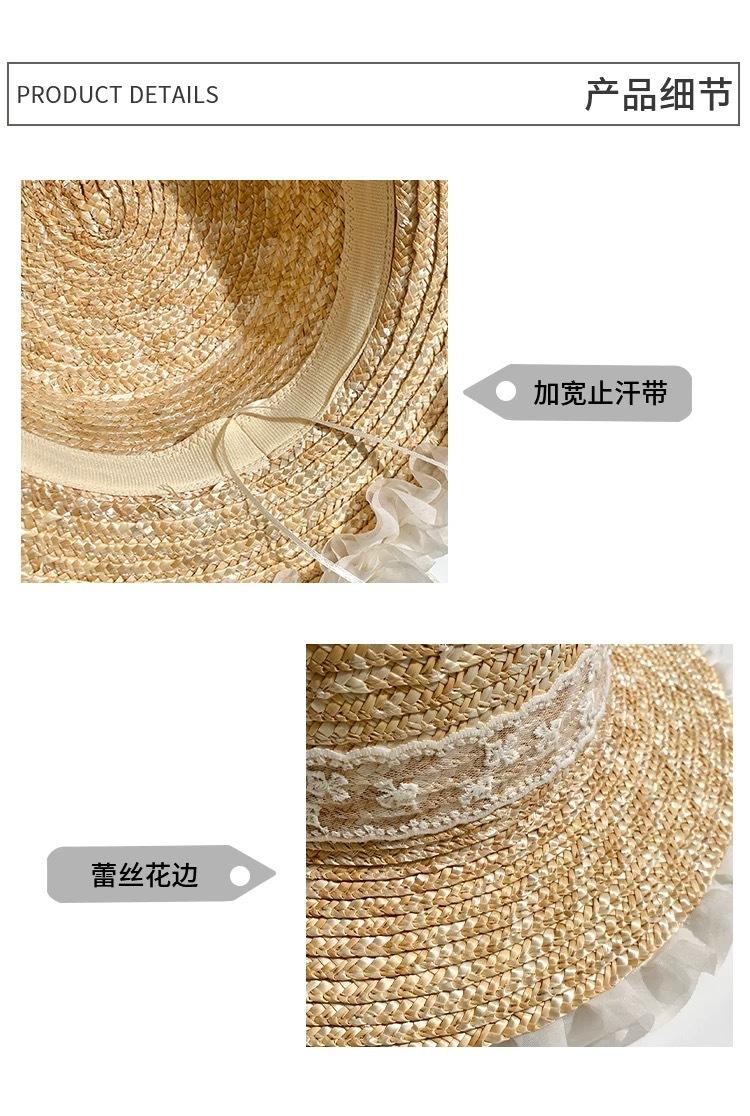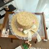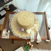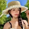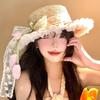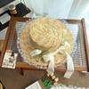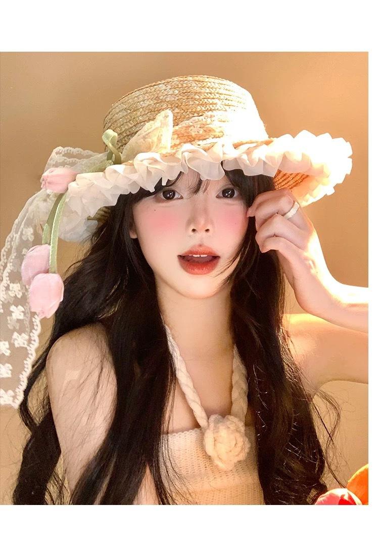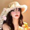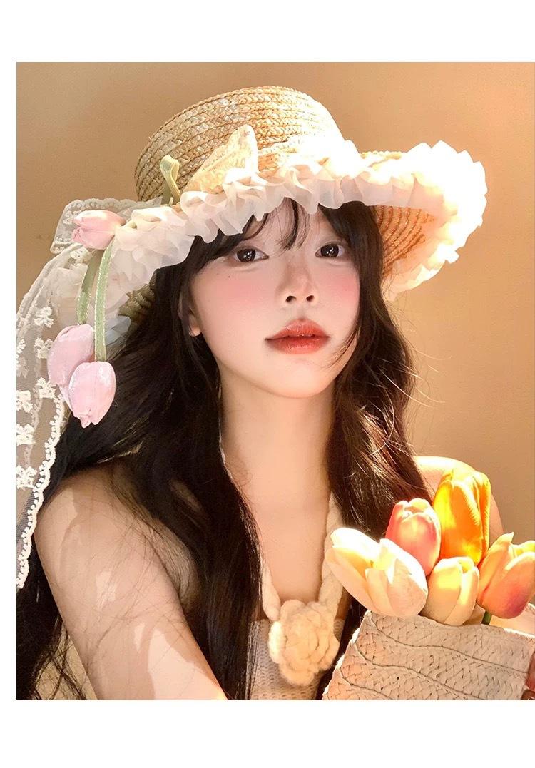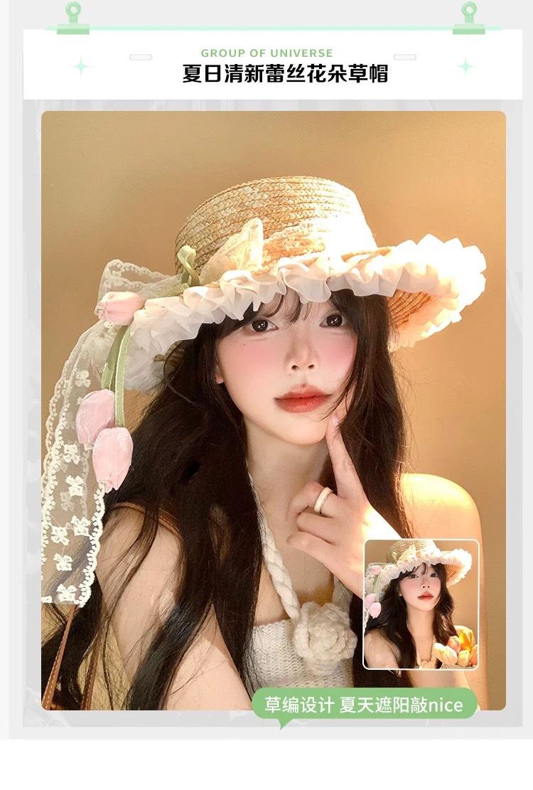 Sombrero de Paja Tulipán con Lazo de Encaje para Mujer Verano Playa Vacaciones Sombrero para el Sol Sombrero Protector Solar para Exterior