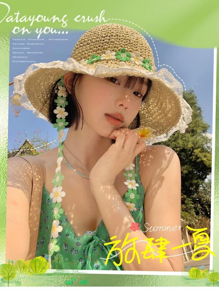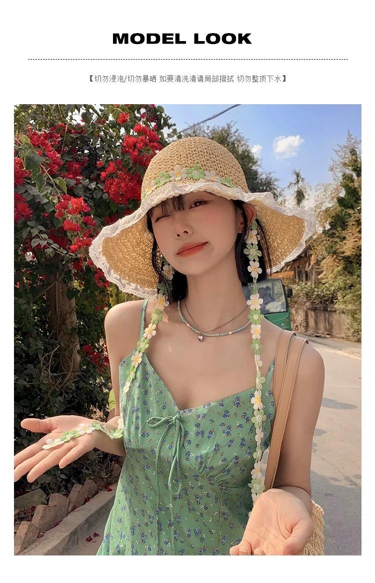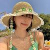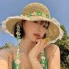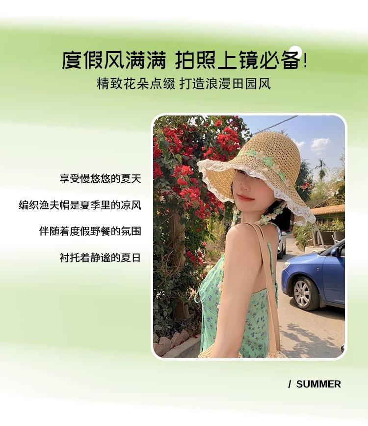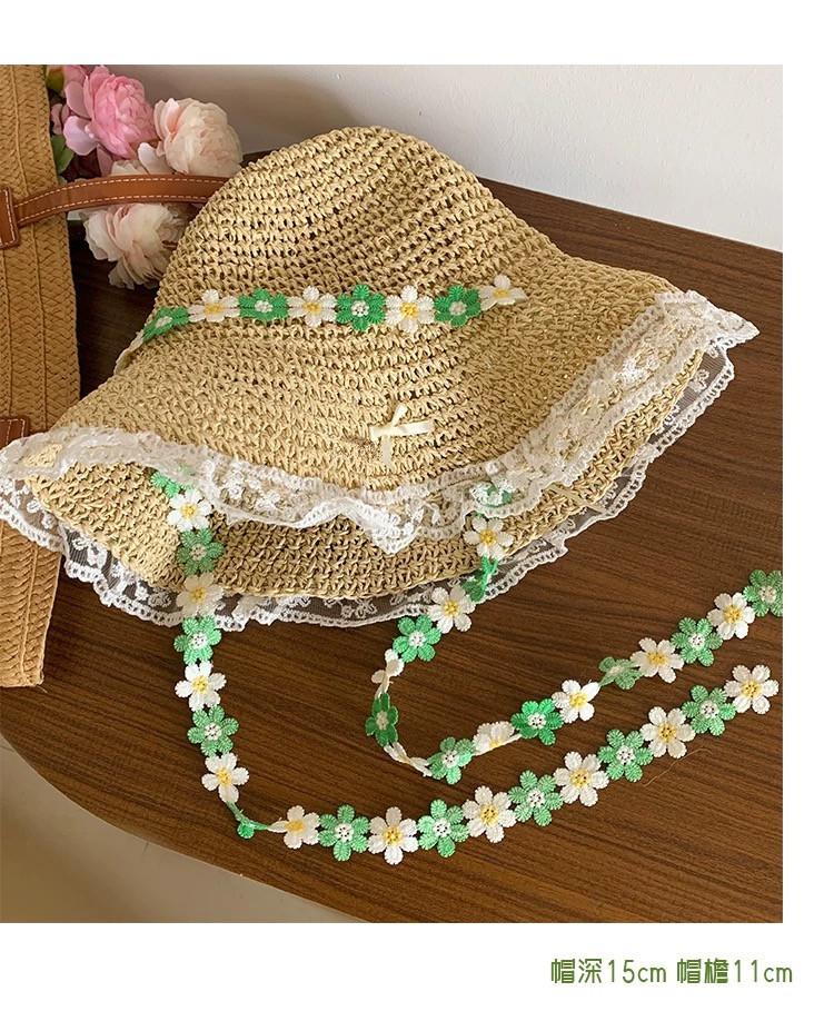 Sombrero de Paja con Encaje de Ala Francesa para Mujer Primavera 2025 Nuevo Sombrero para el Sol de Playa con Flor Sombrero Protector Solar
